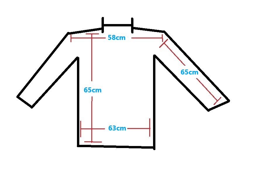 Die Jacke hat die Größe 4XL, die Abmessungen habe ich auf einem Extra Bild eingezeichnet.