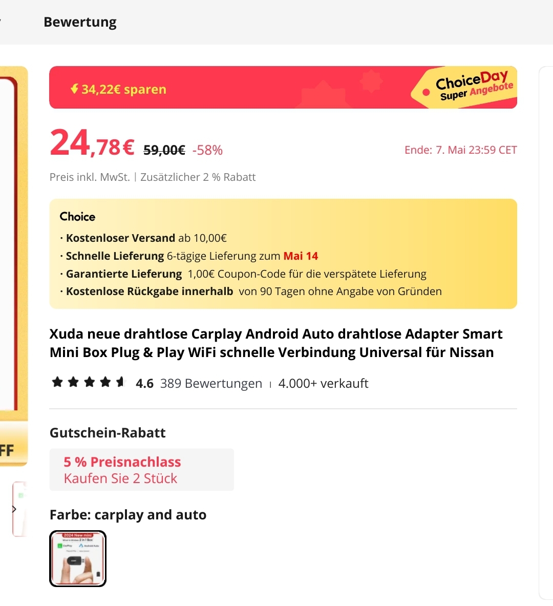 #312 Alles anzeigenAm besten beim Kauf die die "choice" Option achten. Ich hatte ihn nach über 30 Tagen zurück geschickt.