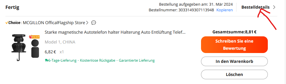 Bestellungen auf alieexpress öffnen