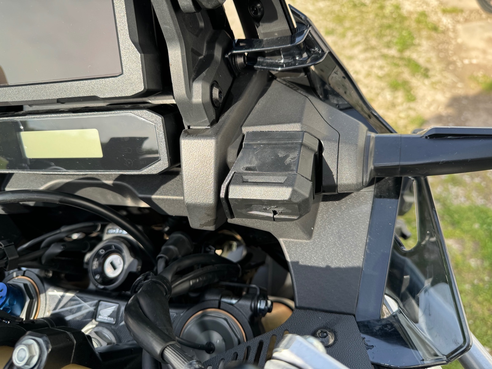 Da ich den Orginaldeckel nicht abmontieren kann (will) , muss unten eine Aussparung für den Haltegummi hin. Bin gespannt, wann der Stecker kommt und ob das funzt. Das Orginal hängt dann unten direkt dran. 5cm kann der Stecker lang sein.