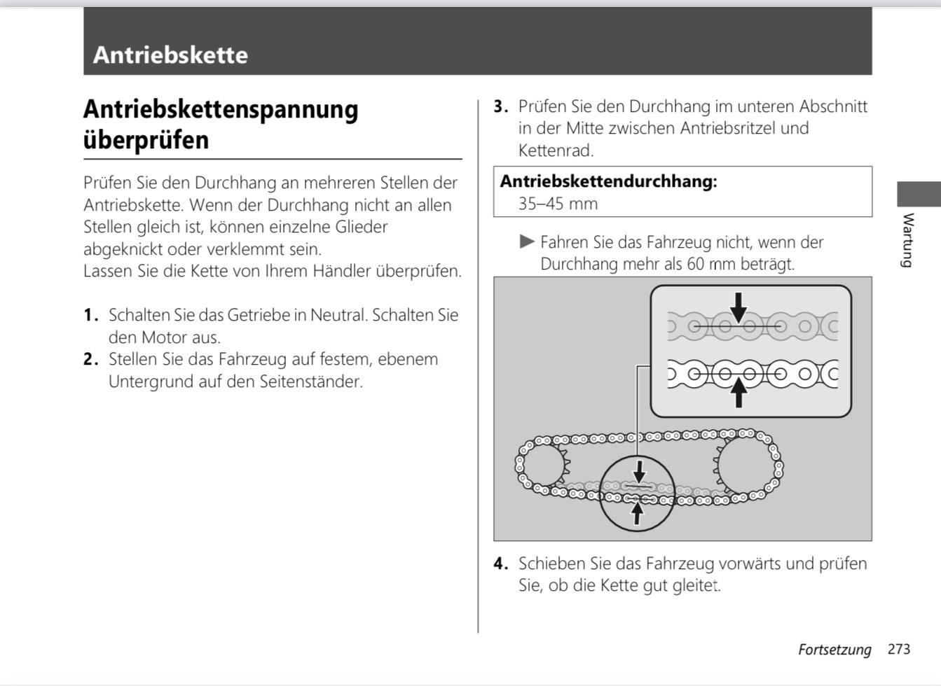 Und zwar geht es um das korrekte prüfen des Kettendurchhangs bei der CRF1100L ATAS.