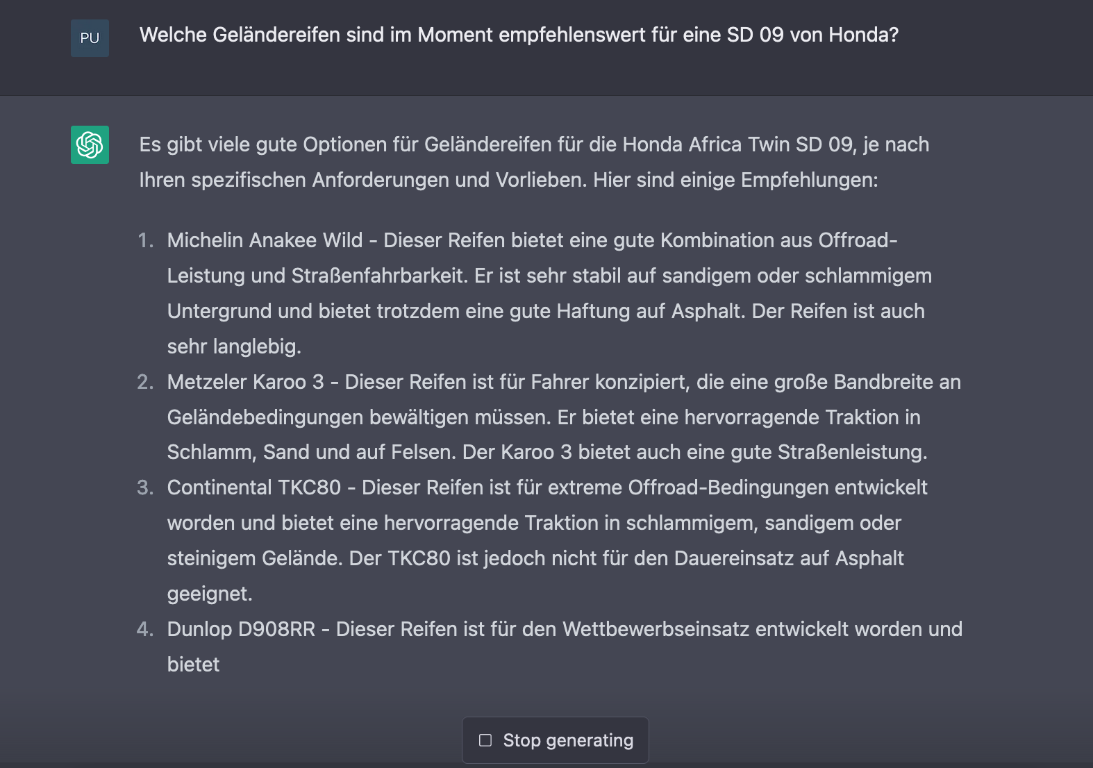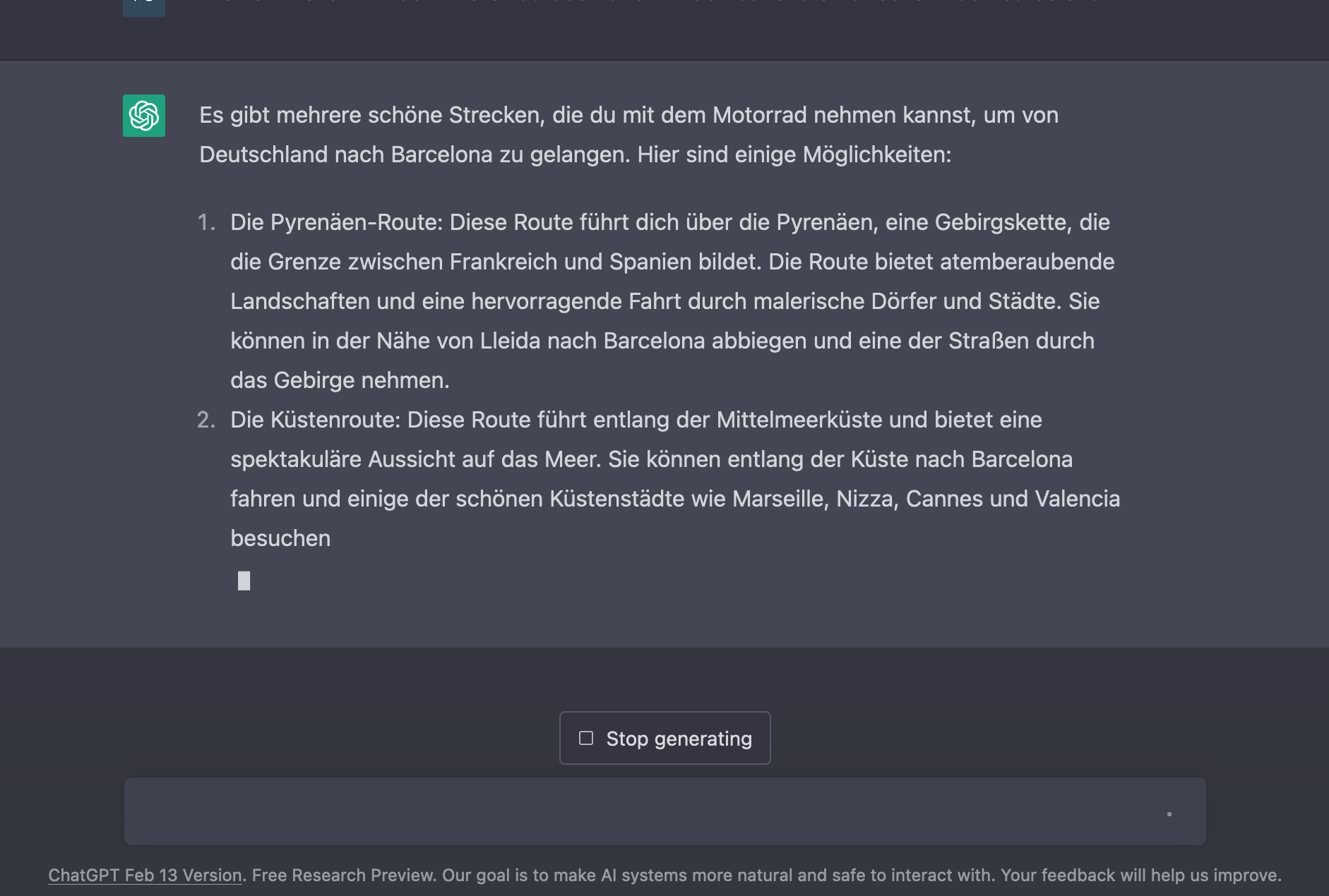 Und je präzisier ihr die Frage stellt, umso genauer bekommt ihr die Antwort. Egal ob es Käsekuchen- und Kaffeeempfehlungen sind oder wie gesagt Streckenplanung.