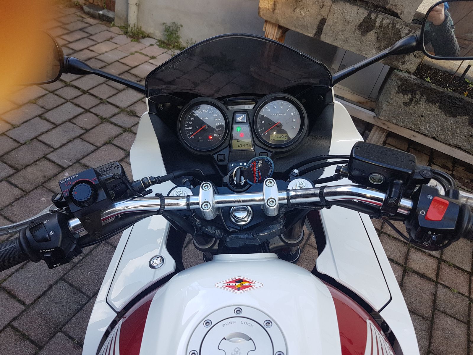Ich bin der zweite Halter, bis letztes Jahr war sie im Erstbesitz eines Sammlers. Hat nachweislich 10.600 km gelaufen, Scheckheftgepflegt bei Honda, Nachweise vorhanden. Bis auf eine kleine Macke Neuzustand!