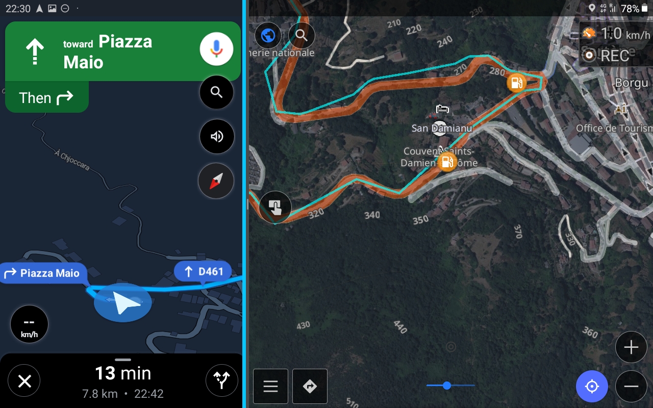 Insgesamt ist das ne ziemlich coole Ergänzung, weil man auf dem Bildschirm eine relativ genaue Karte + Navigation hat. Außerdem zeigt das OsmAnd auch, wenn man mal zu schnell fährt. ![]()