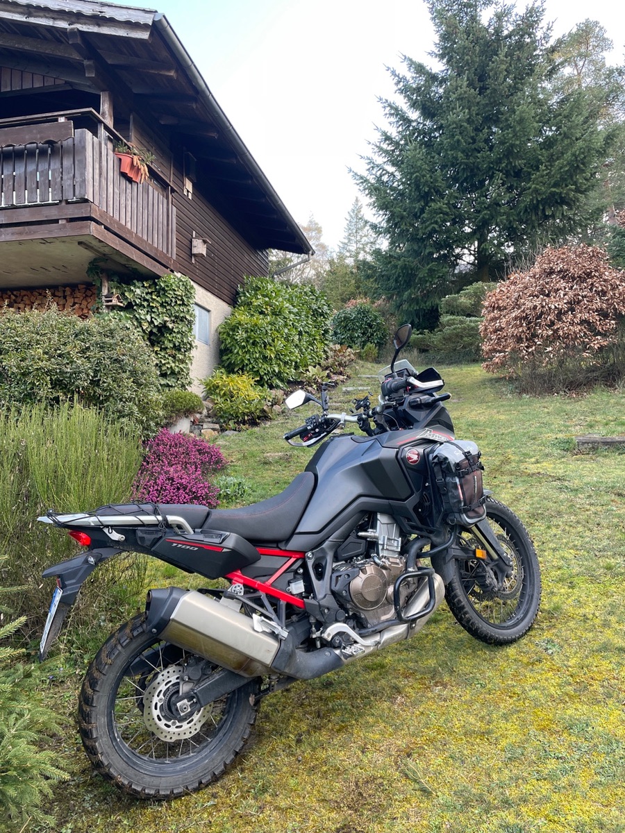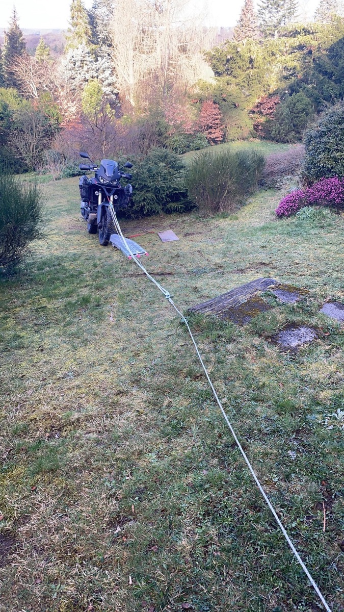stehe gerade mit meiner Dicken unterhalb des Wochenendhauses im Taunus. Es hat die letzten Tage stark geregnet, warum ich das Moped auch runter unter den Balkon gefahren habe.