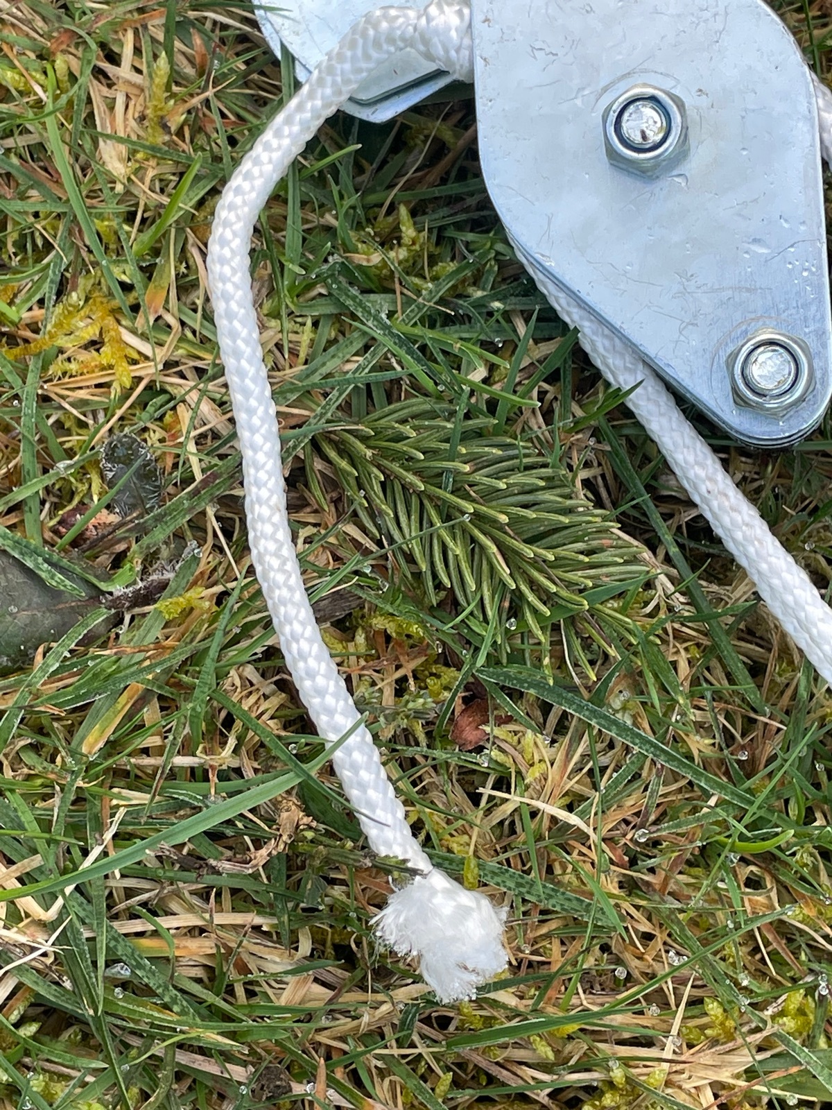 Flaschenzug (hatte ich noch von der Westalpentour dabei, einfach mal fürs Schlimmste eingepackt), … gerissen (von wegen 400 kg).