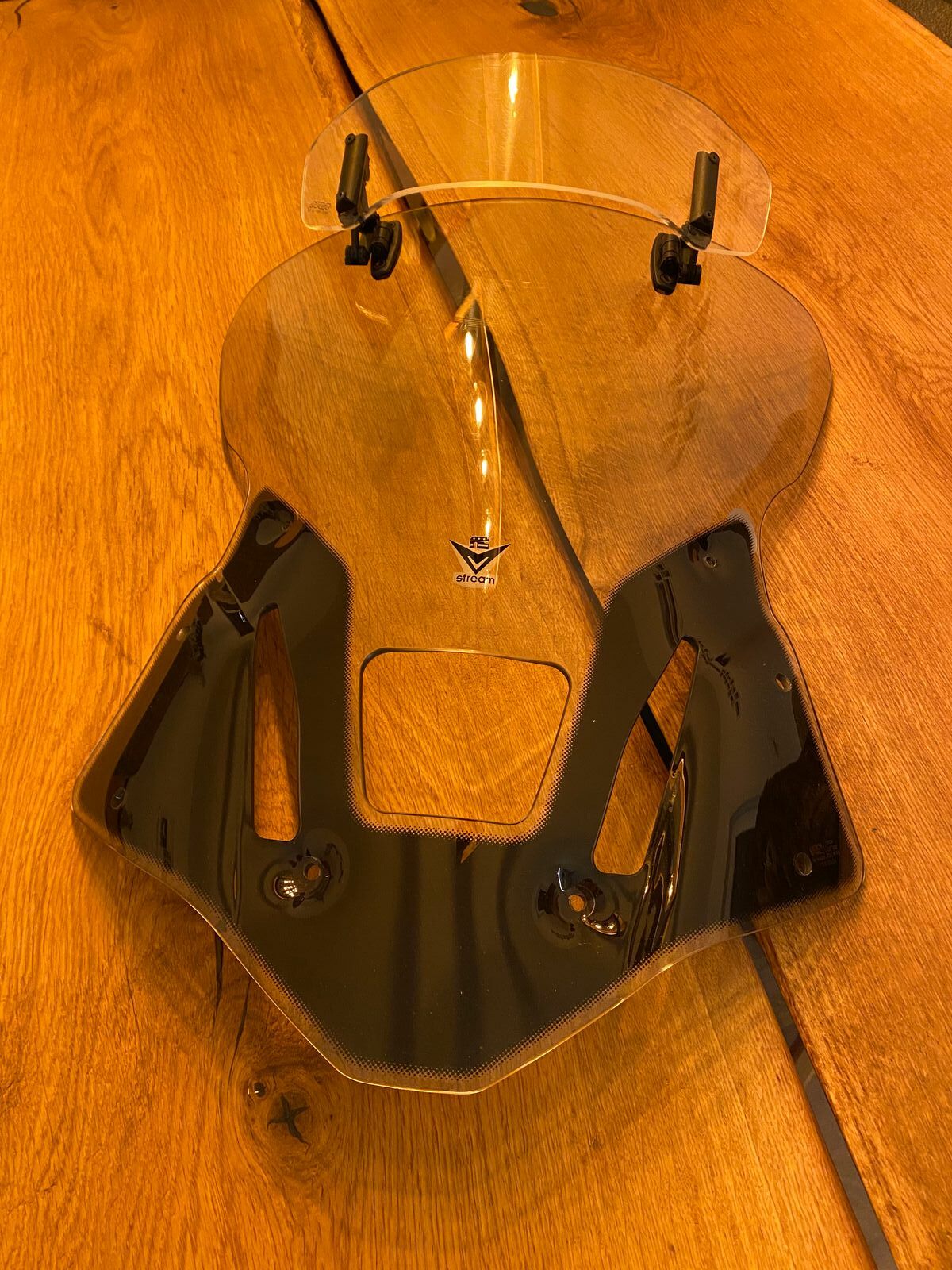 Das Windschild ist ca. 3 Jahre alt und wurde durch den XC Spolier von MRA in Klar aufgerüstet.