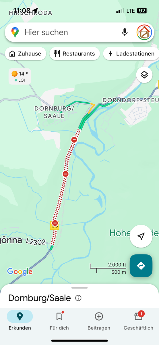 Bei der Calimoto Karte ist nix zu sehen von der Sperrung