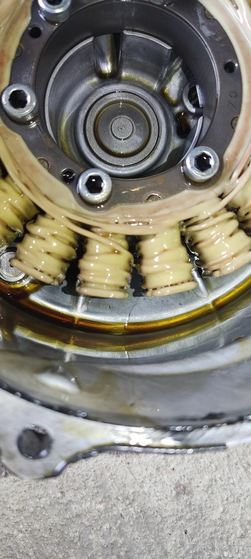 Ich bin gestern mit ca. 30km/h auf Asphalt gestürzt. Trotz oder wegen des Sturzbügels hat der Kurbelgehäusedeckels nun einen Riß, an dem im Betrieb Öl austritt. Über Nacht ist kein Öl raus, also sehr kleine Öffnung.