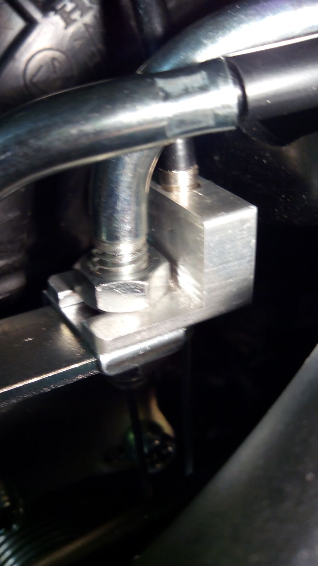 An den öffnenten Gasbowdenzug an den Drosselklappen habe ich einen Mitnehmer geschraubt an welchen ein anderer Bowdenzug (Fahrrad) ,der zu einen Modellbauservo führt, angeschlossen ist.