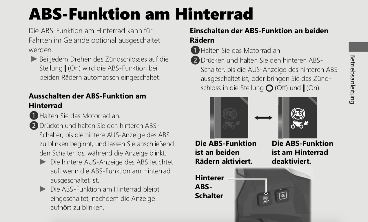 Hab schon überlegt, ob man das ABS ggf. nur im "Gravel" Fahrmodi abschalten kann. Soll aber ja in allen Fahrmodis funktionieren.