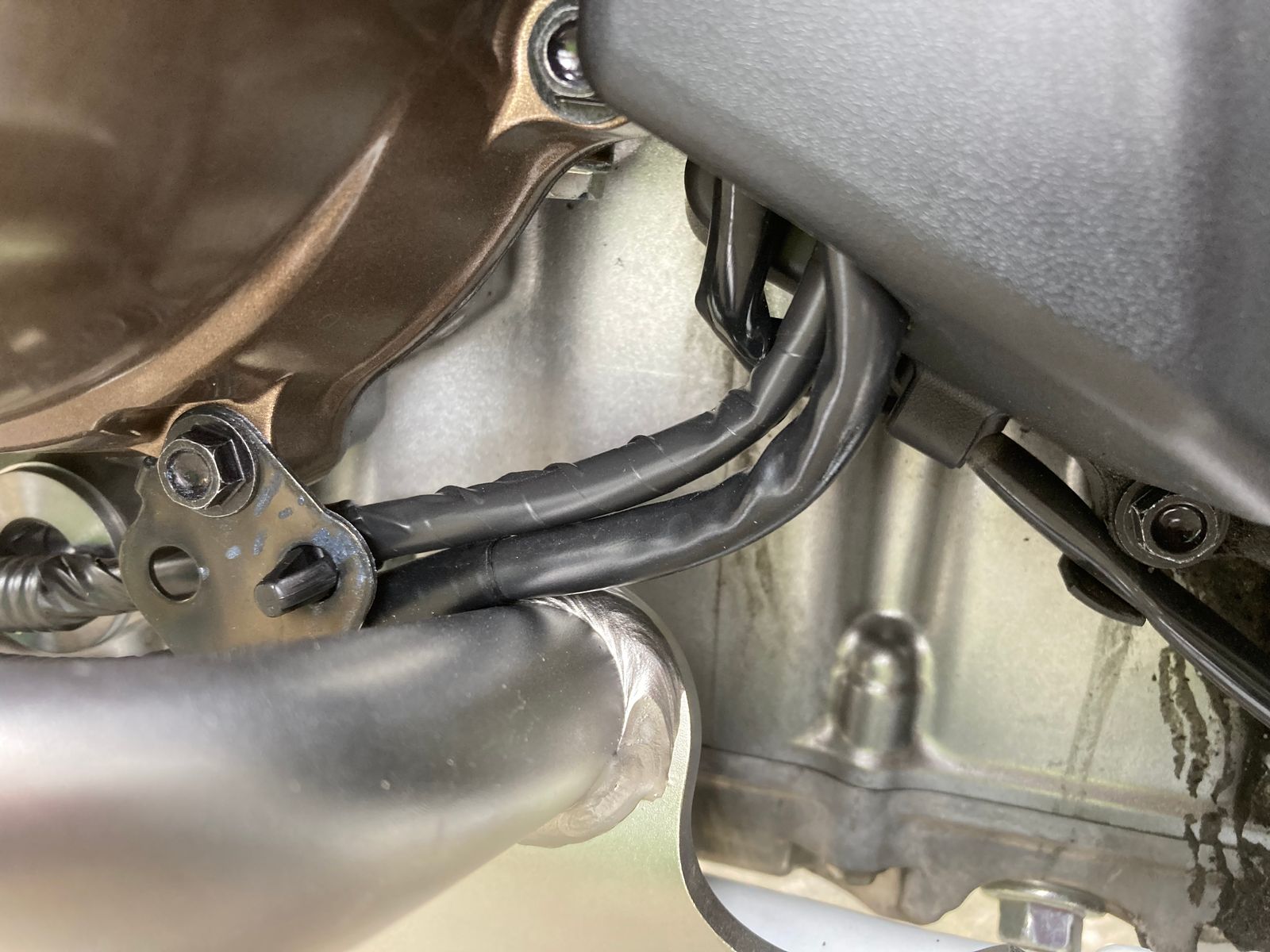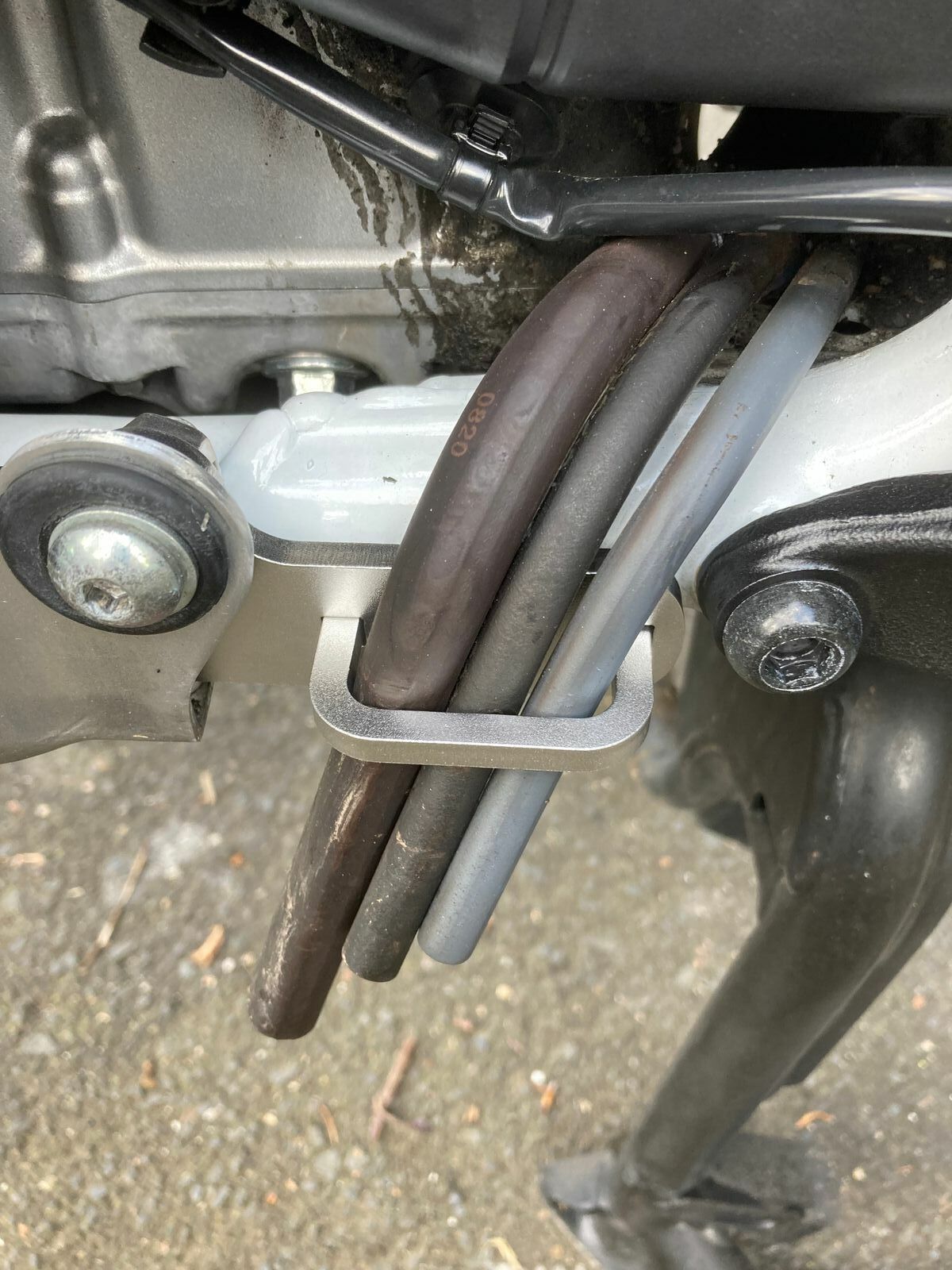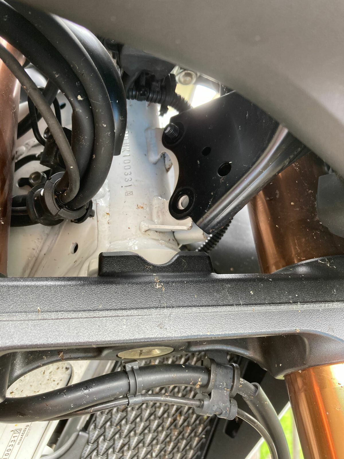 Mit Unterstützung des Verpackungsmateriales kann man dann den Bügel auf dem vorderen Schmutzfänger...Schutzblech....Schutzplastik, wie auch immer, ablegen. Eine Hand gewonnen.
