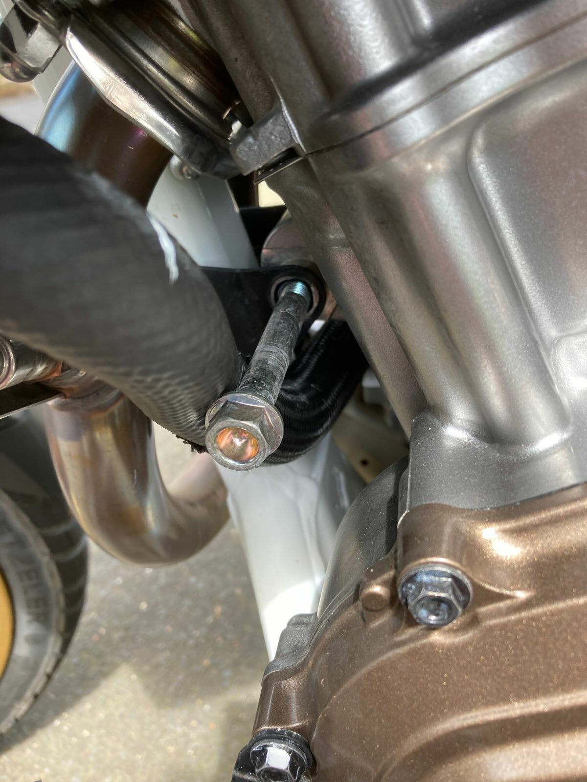 Dann musste eine der Motorhalterungen raus. Kein Problem, dadurch fällt der Motor ja nicht runter.