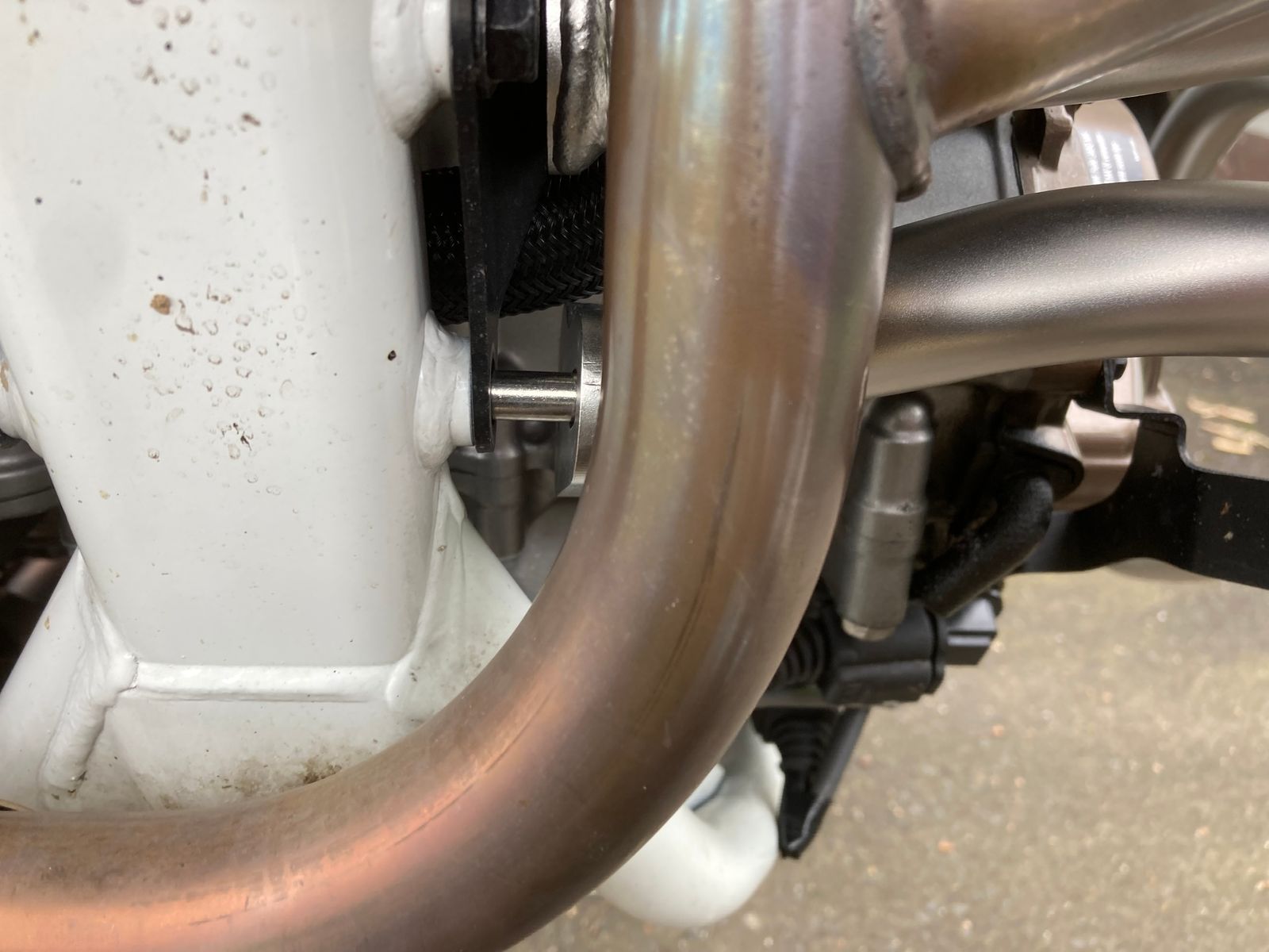 Dort wo die silberne Schraube sitzt, erfolgt die Befestigung des oberen Bügels.