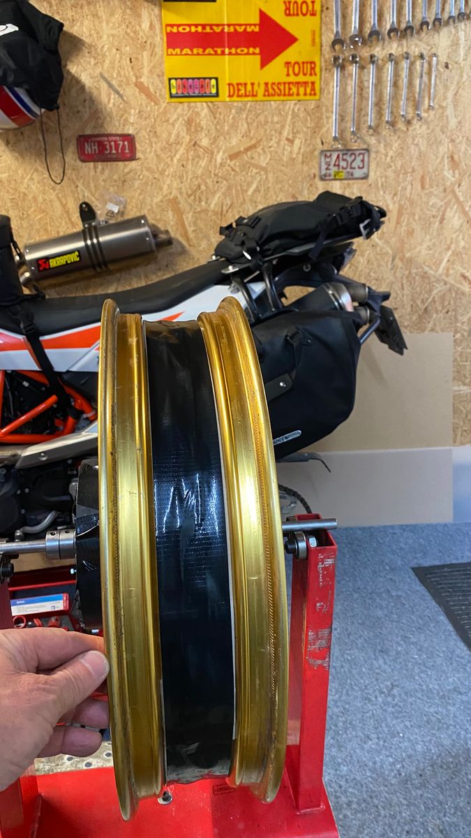 Wieso wir das gemacht haben? Der grösste Negativpunkt an meiner CRF1100 waren für mich immer die Schlauchreifen. Nicht deren Montage auf einer Reifenmontiermaschine - nein, es war immer die kleine Angst da unterwegs wegen einer blöden kleinen Schraube, Nagel oder Holzsplitter gleich die grosse Zerlegung machen zu müssen. Und ja, ich kann das zwar, war da aber nie erfreut drüber. Und es ist mir bewusst, dass auch twotwo im Falle einer zu grossen Verletzung des Reifenmantels kapituliert. Alles im Bereich bis Ø 8mm funktioniert mit dem von mir eingesetzten Dichtsystem von Slime, welches ich für das Beste halte.