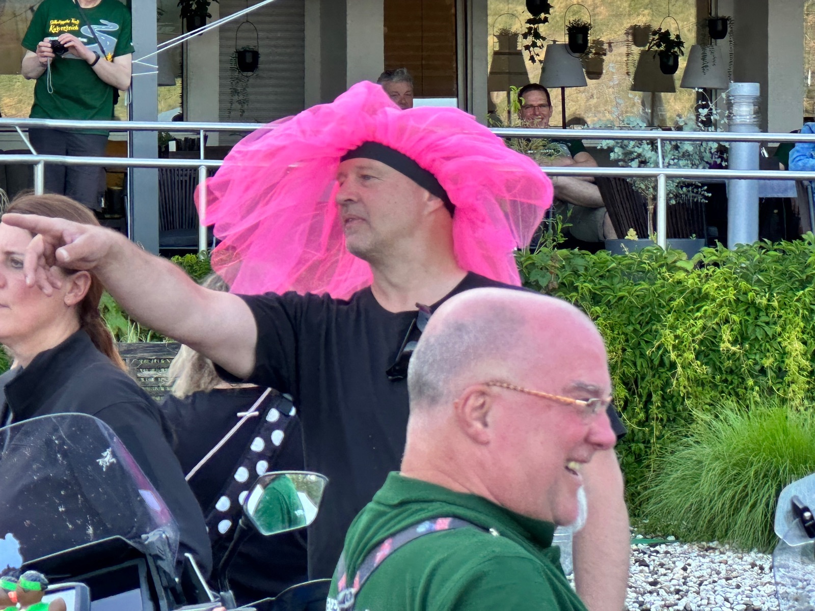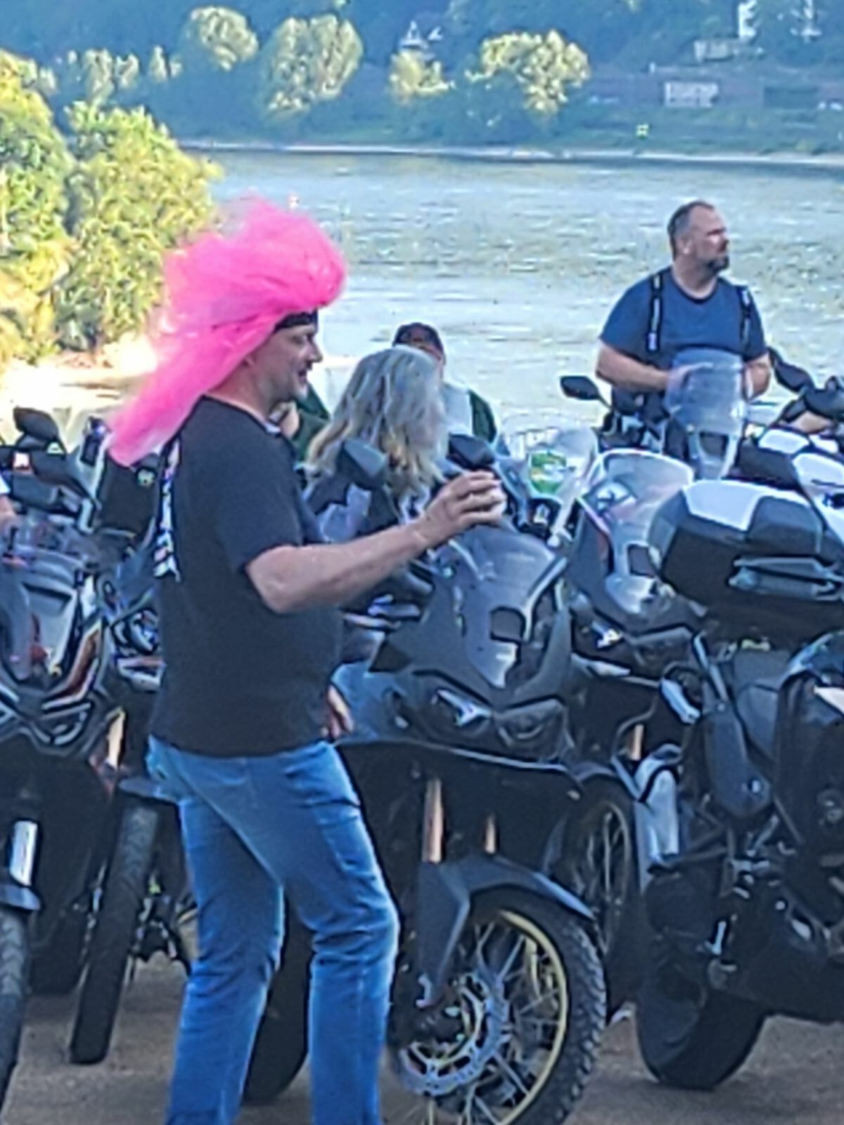 Das zarte Pink lässt sich gut mit schwarzen Motorradklamotten kombinieren und die Bewegungsfreiheit wird nicht eingeschränkt. Aufsteigen über die Fußraste gut möglich.