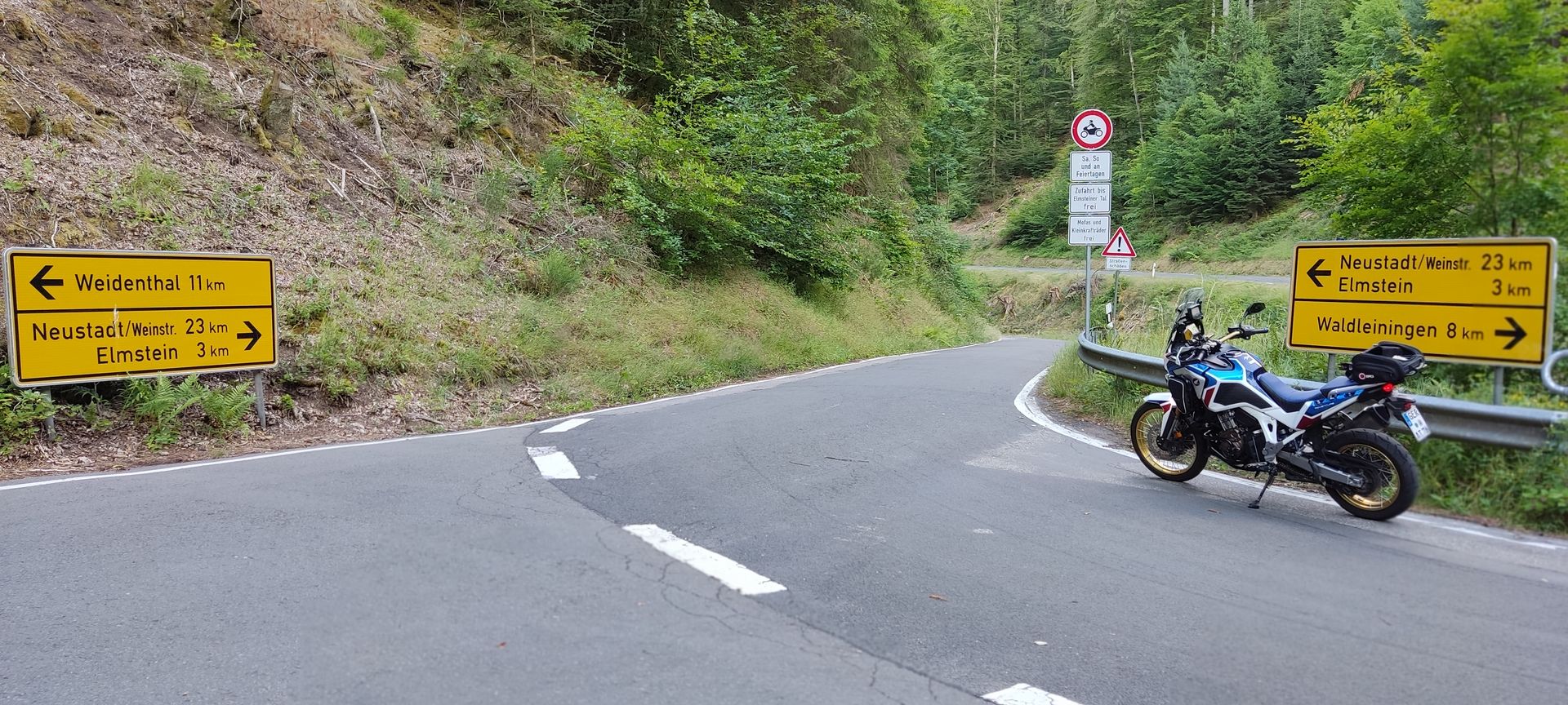 B48 nach Waldleiningen ist nicht gesperrt. Aber weiter unten kurz vor Elmstein dann doch gesperrt. Hier darf man nur nach Weidenthal fahren. Als am WE mit Moped nach Elmsteim geht nicht.