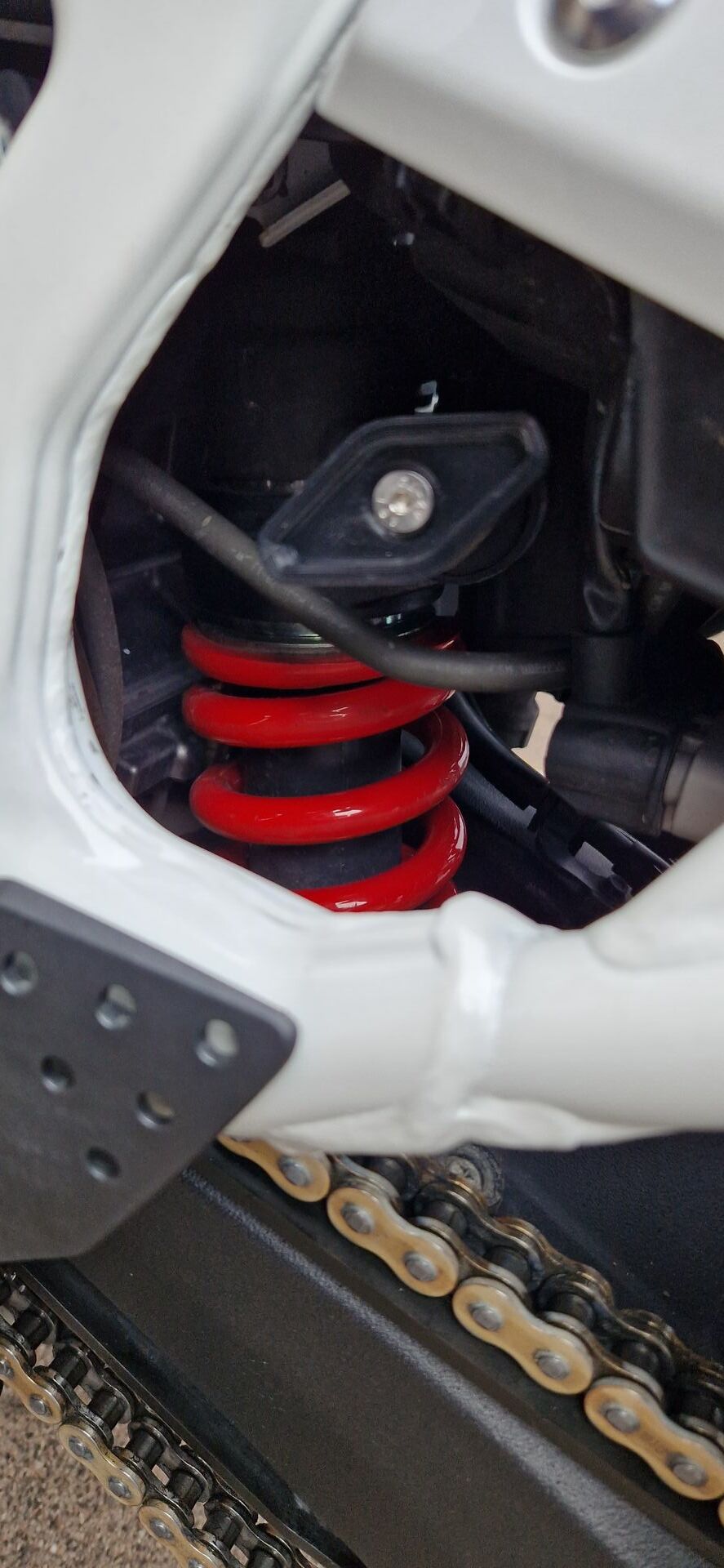 • Fahrwerk: Touratech progressive Gabelfedern mit SAE 7,5 Wilbers Zero Friction Gabelöl, K-Tech 110N rote Feder für hinteres Federbein, wegen der längere K-Tech Feder wurde eine BikeFarm Tieferlegung verbaut um die Geometrie wieder auf OEM Maße zu ändern. Verbesserter Einsteller für die Federvorspannung hinteres Federbein aus dem Honda Forum kein festsetzen mehr des Verstellers durch Schmutz. Rote Alu Stellsterne für die Gabelfeder Vorspannung.
