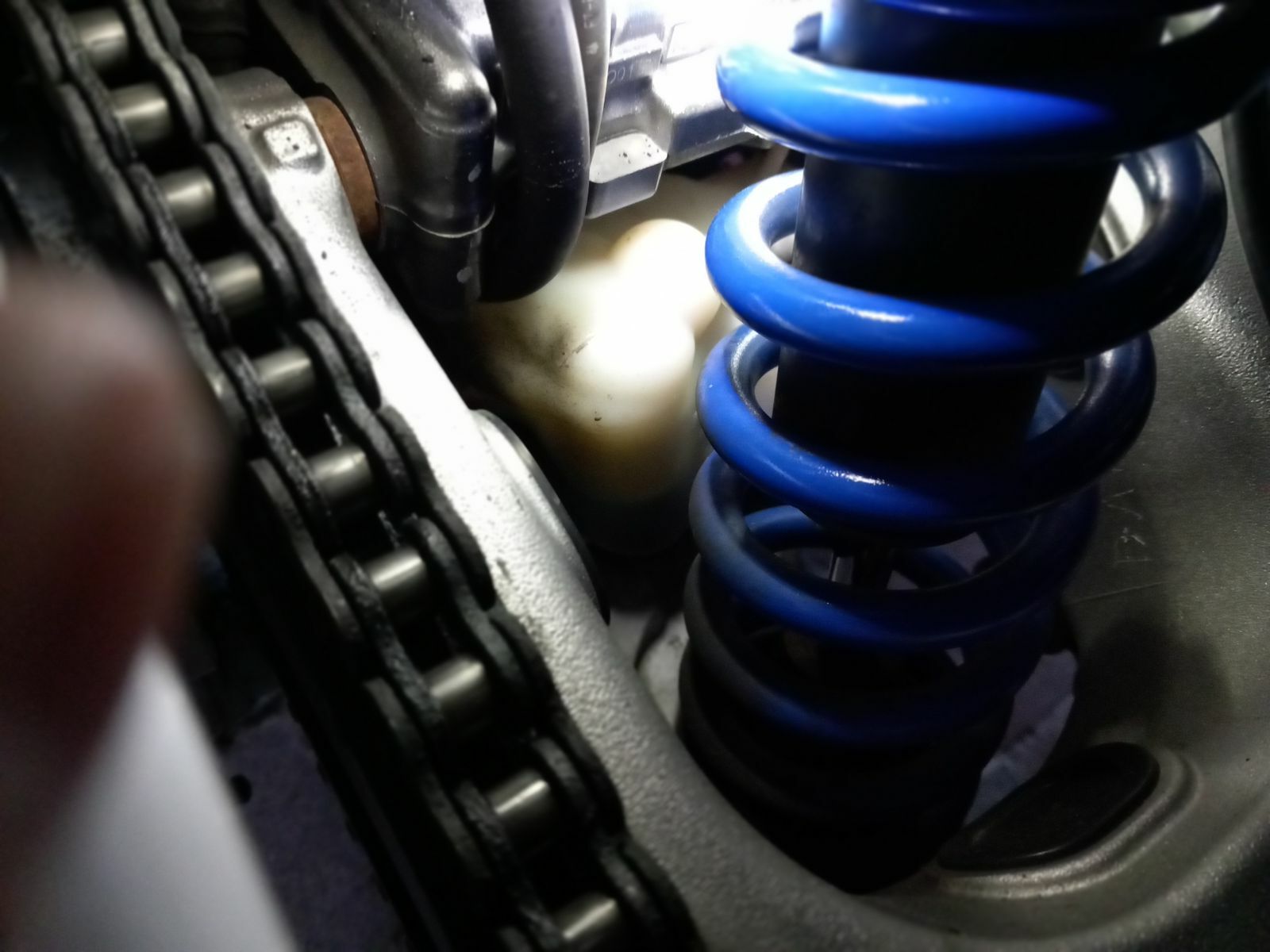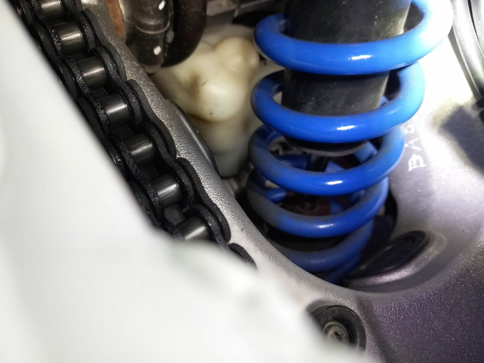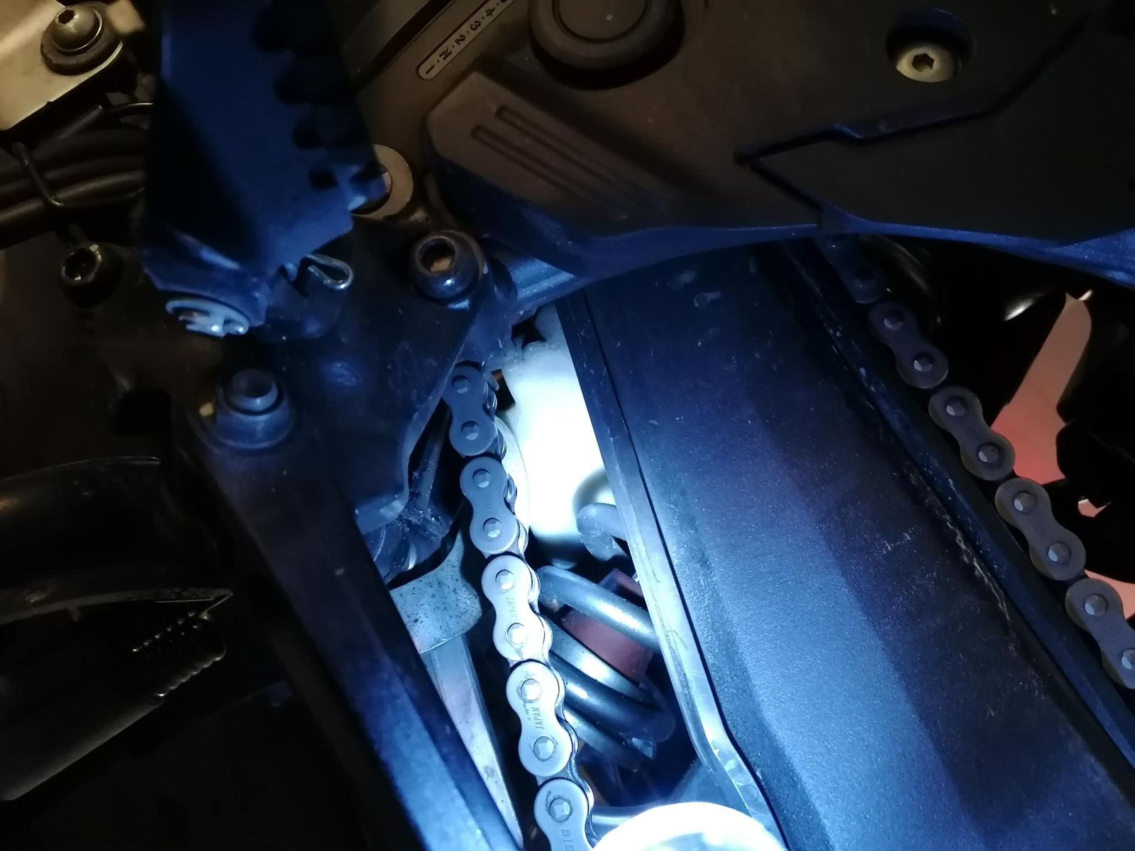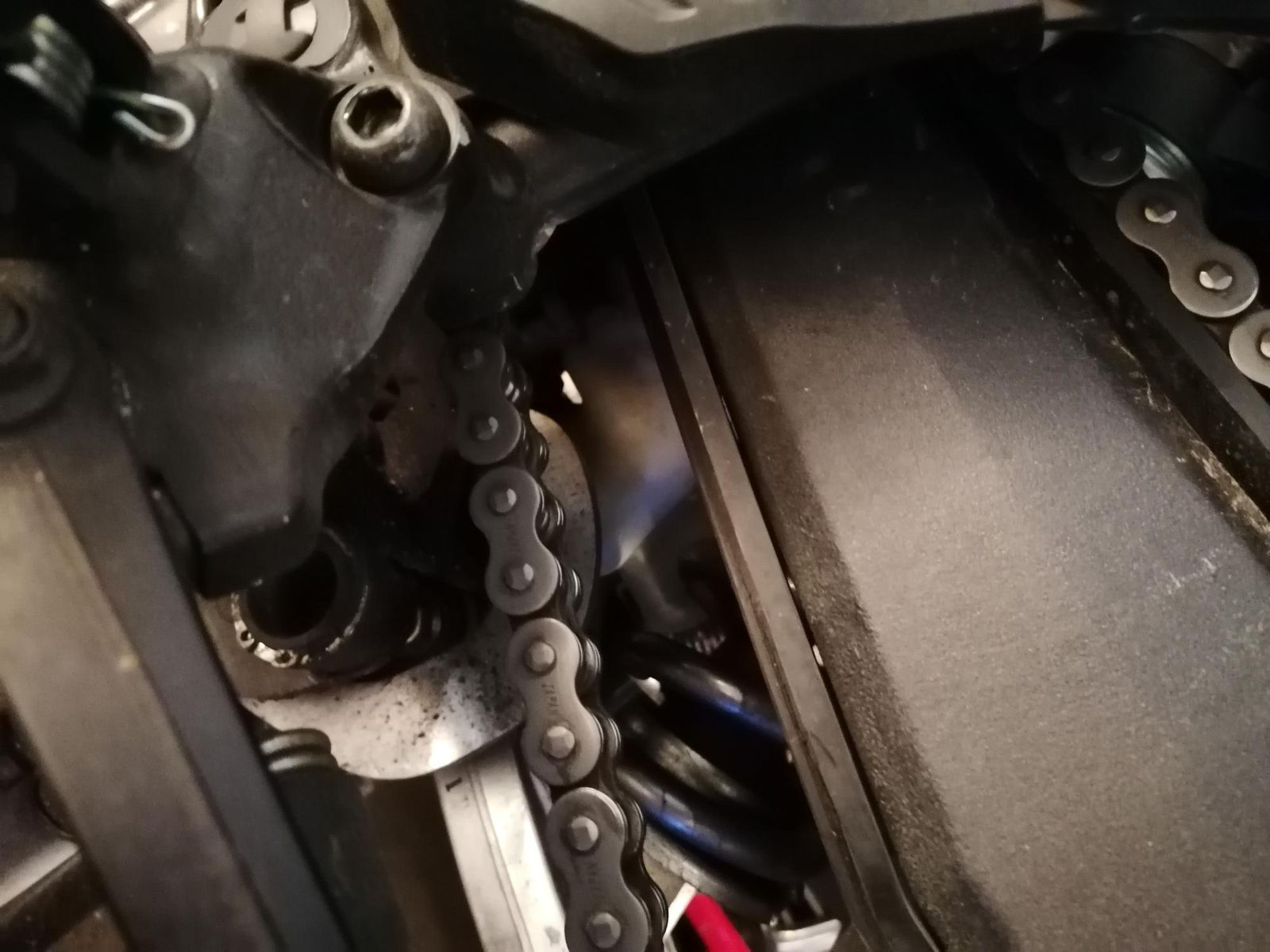 Nach einer längeren Tour wollte ich heute meine Kette schmieren. Als ich den Kettenschutz zu demontieren begann, um die Kette besser reinigen zu können, machte ich eine schaurige Entdeckung: Ein fremdartiges, weißes Alien scheint aus meinem Motor zu wachsen!
