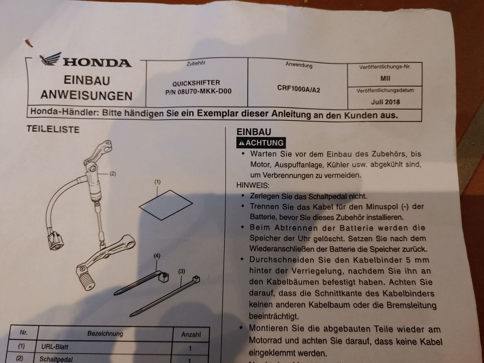Da ich total auf Quickshifter stehe, habe ich beim Honda Händler nachgefragt ob es einen originalen Quickshifter für mein Modell gibt. Er bejahte und meinte der 08u70-mkk-d01 müsste passen. Ich habe mir dann diesen besorgt und wollte ihn heute einbauen doch leider scheiterte ich beim Einbau weil ich den Verbindungsstecker inklusive Blind Stück nicht an meinem Motorrad zu finden waren.