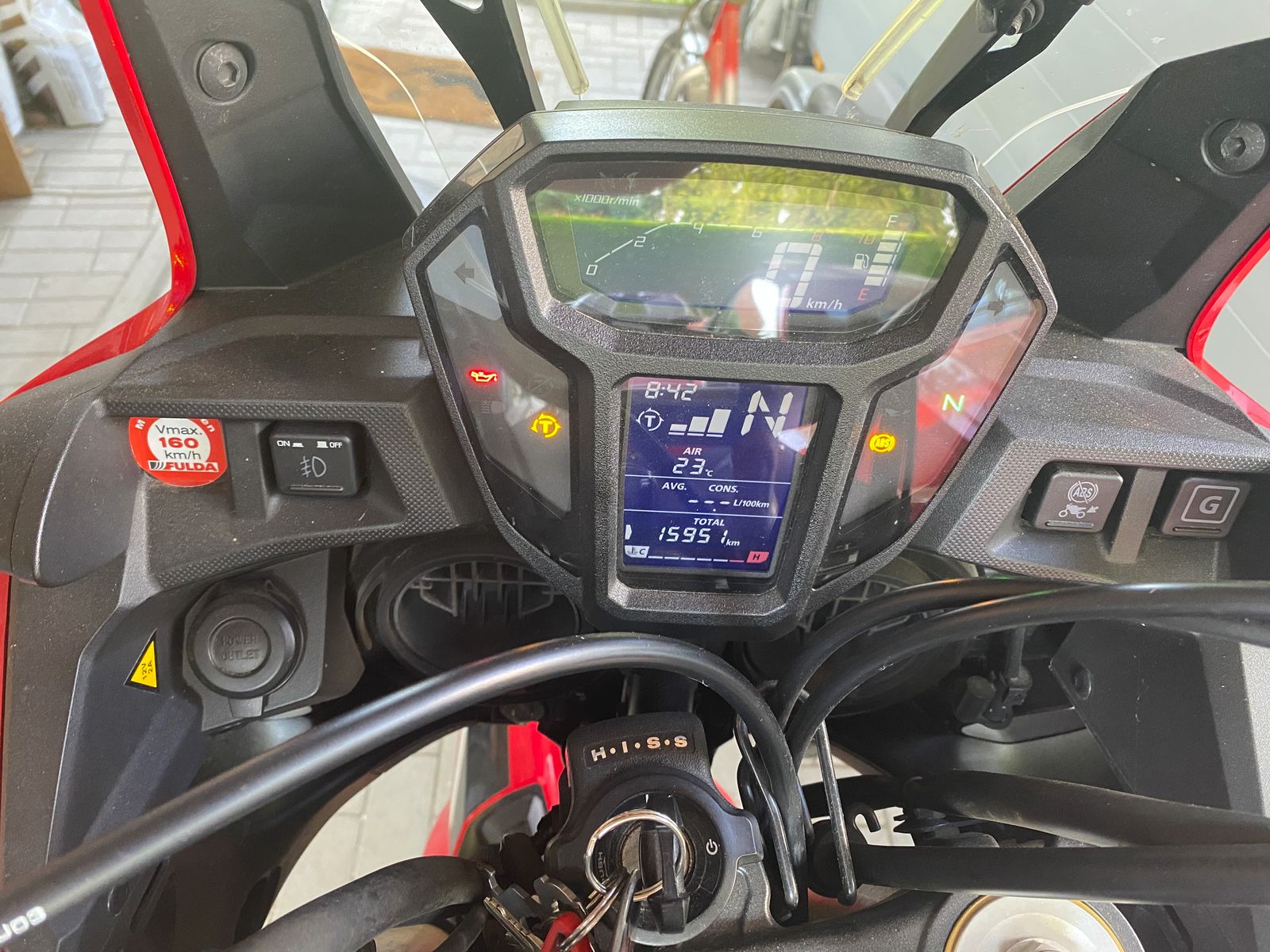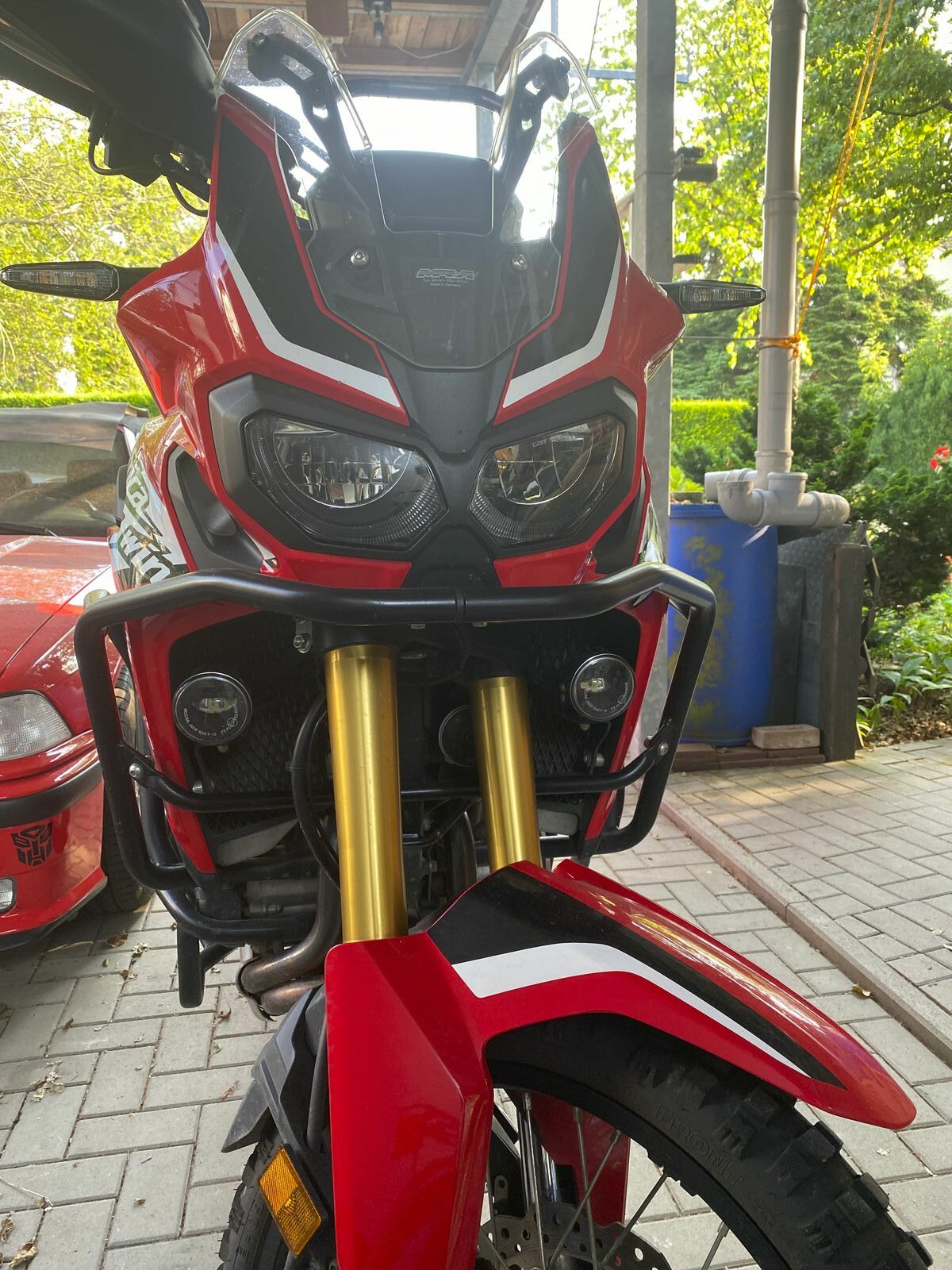 - Touratech Nebelscheinwerfer mit im Cockpit integriertem, originalen Honda-Nebellicht-Schalter