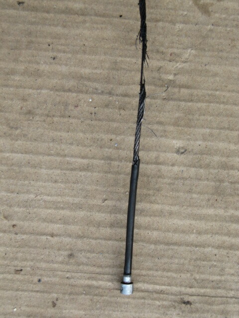 Noch vor dem Urlaub wollte ich meinen Kupplungszug auf leichtgängigkeit überprüfen. Das Motorrad hatte schon über 110000 km. Also oben ausgehängt und unten und oben am Innenzug gezogen. Die Kupplung funktionierte noch aber als ich dann den schwergängigen Innnenzug oben am Nippel abpfetzte und unten herauszog hing dieser nur noch an den Innenfäden, die Äuseren waren abgerissen. Also in alte Hülle einen neuen Innenzug eingezogen und unten mit Schraubnippel versehen. Hat die 7000 Urlaubskilometer locker gehalten, demnächst kommt ein Originalzug hinein