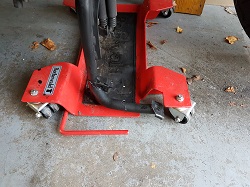 Man muss auf dem Dingens den Hauptständer ganz vorn und eher links anfangen mit aufbocken.