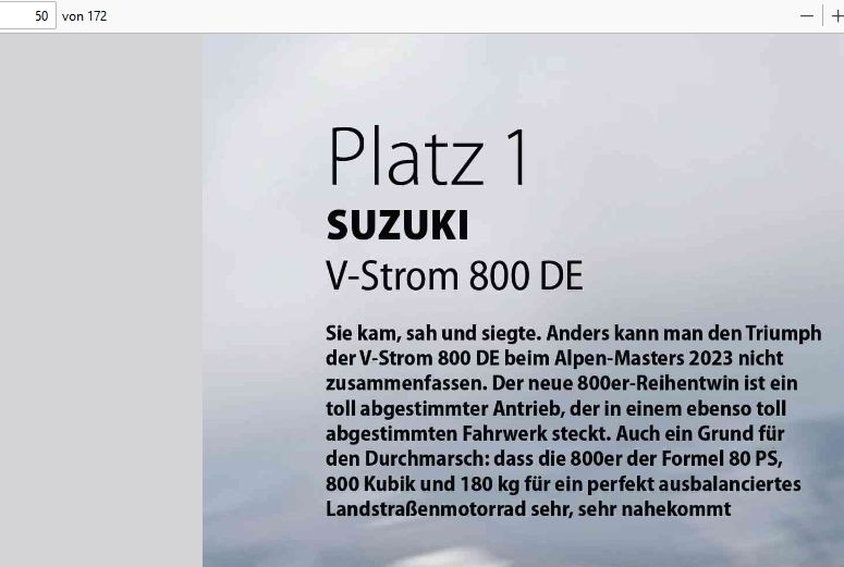 Die V-Strom 800 DE "gewinnt". IMO schade dass sie so schwer ist.