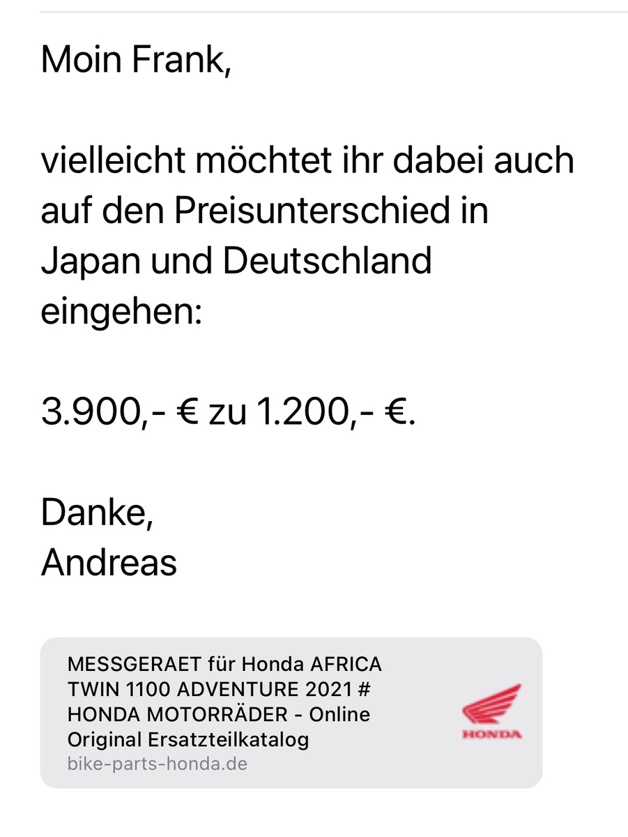 Dafür muss man nicht hin fahren. Bei webike bekommt man die Teile üblicherweise zum besten online Kurs, Versand und Zoll kommen natürlich noch drauf aber im Rahmen. Man bräuchte nur die Ersatzteil Nummer