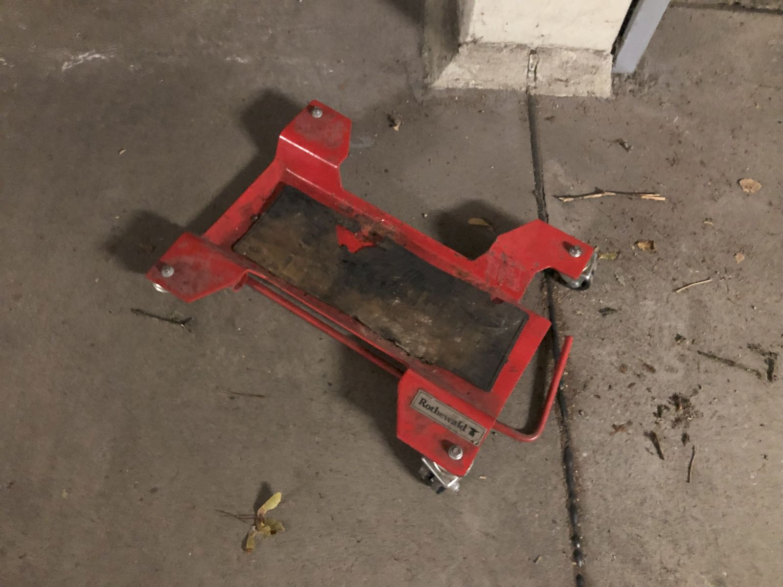 Ich habe, wie viele andere Leute das Problem, dass mein Mopped hinten quer in eine Garage muss, damit vorn noch das Auto reinpasst. Zwischen den Seitenwänden ist nicht genug Platz zum Rangieren, also muss ich das Motorrad irgendwie um 90 Grad drehen und dann quer an die Wand schieben.