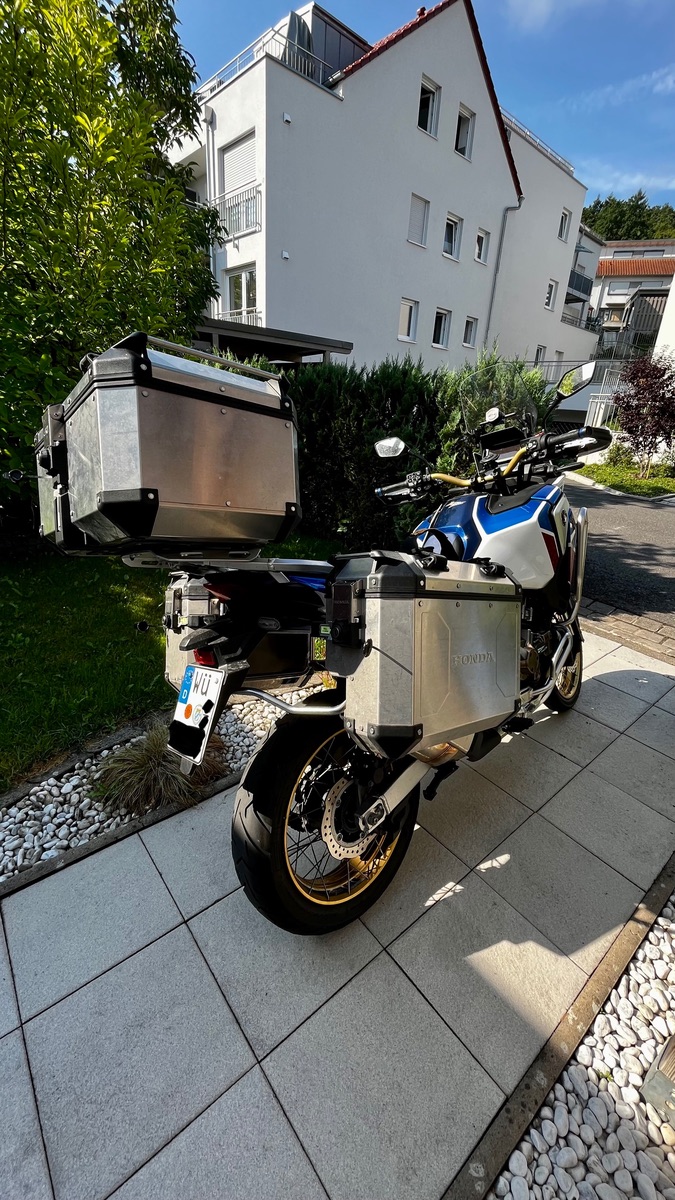 - Die beiden Alu-Seitenkoffer sind von HONDA und mit dem Zündschlüssel zu öffnen (es passen keine Helme, vielleicht ins Jethelm rein.)