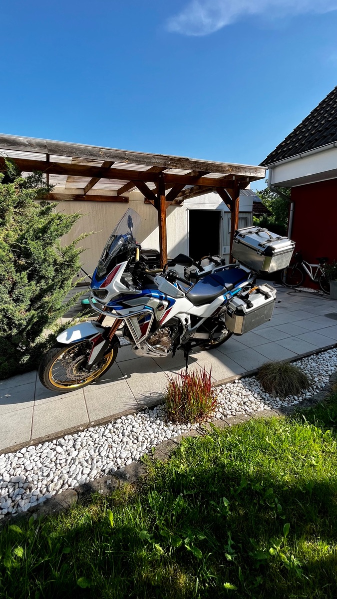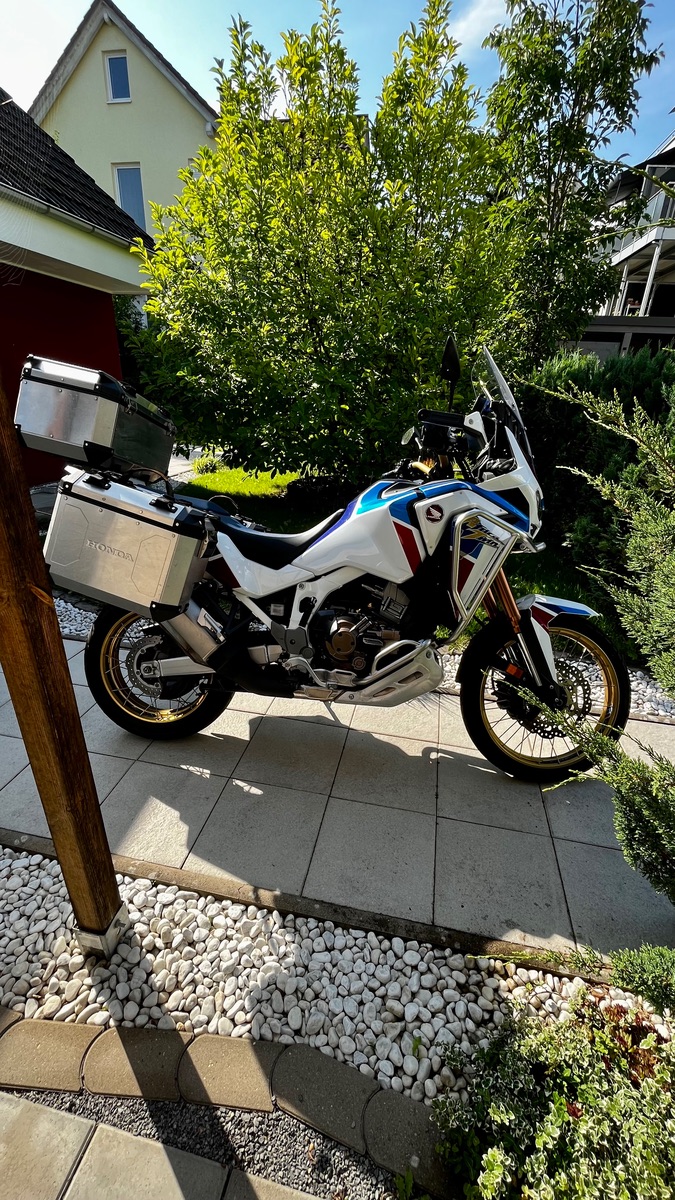 HONDA Africa Twin Adventure Sports, Tricolor, mit DCT und elektronischem Fahrwerk.