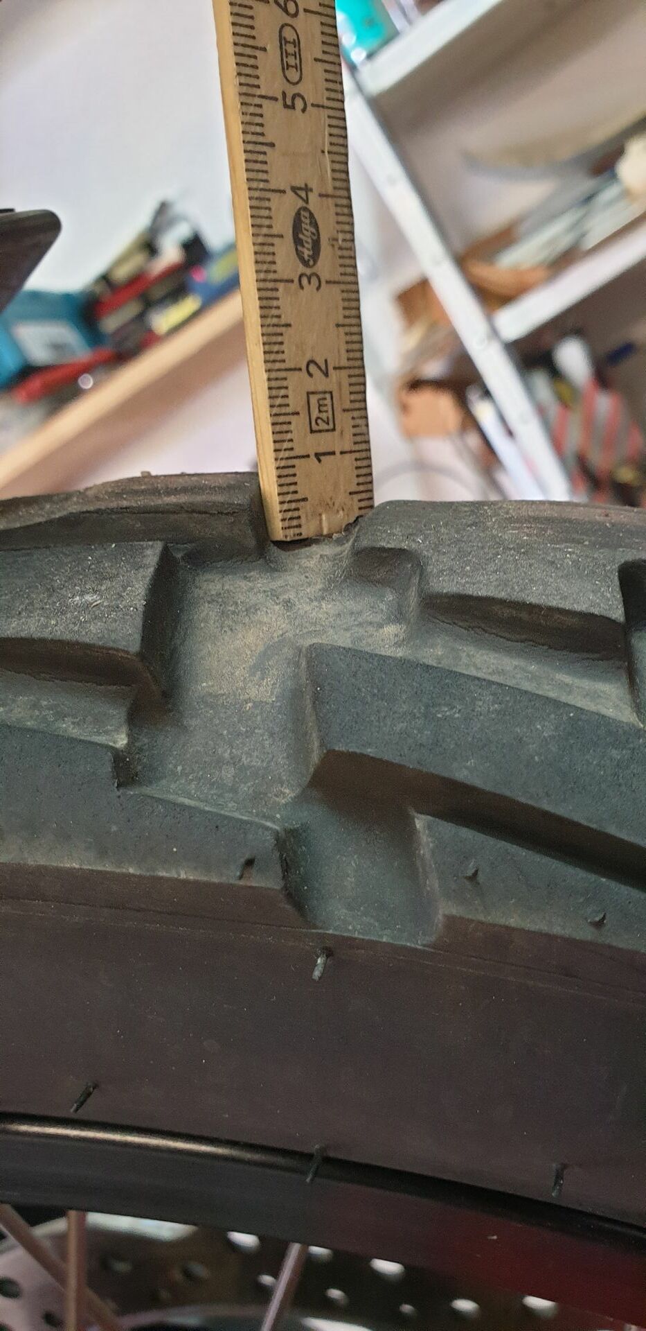 Mein Trailmax Raid ist nach 4600km hinten bei 1 mm angekommen. Vorne noch ca. 4 mm.