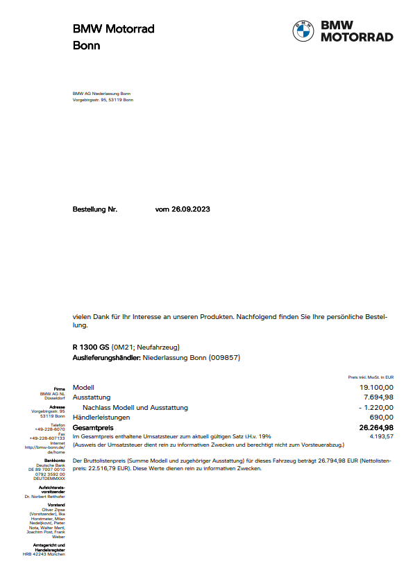 Da bin ich noch weit entfernt von dem Preis einer 1300 GS. Warten wir mal auf die GSA und die M Modelle. Die werden schick und teuer.