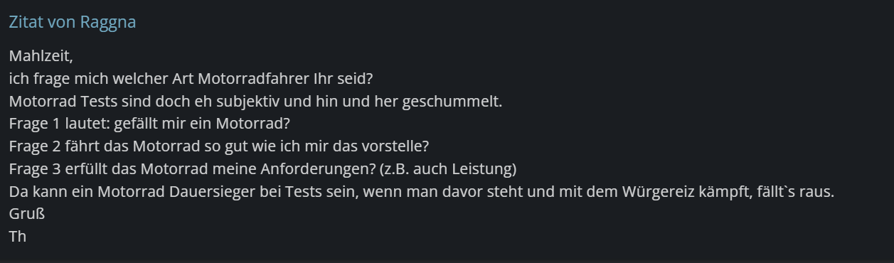 Auf die Tests von Motorrad und 1000ps scheixxe ich und das schon lange, meistens haben die bmw Brille auf, dct mögen sie nicht, obwohl ein Schalter ist ja auch im Angebot. Das andere ist das sportmopedjunkies als Tester nicht wirklich das gelbe vom Ei sind für enduro/Adventure Tests.