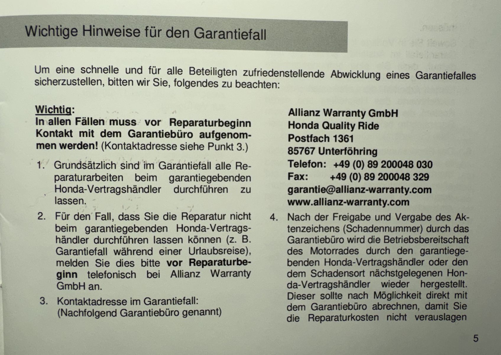 Alles anzeigenIch habe meine AT am Samstag zur 12000er Inspektion in Werkstatt gefahren. Heute hat mich die Werkstatt angerufen und gefragt, wann ich das Motorrad wider brauche, da sie laut Honda das Display tauschen wollen.