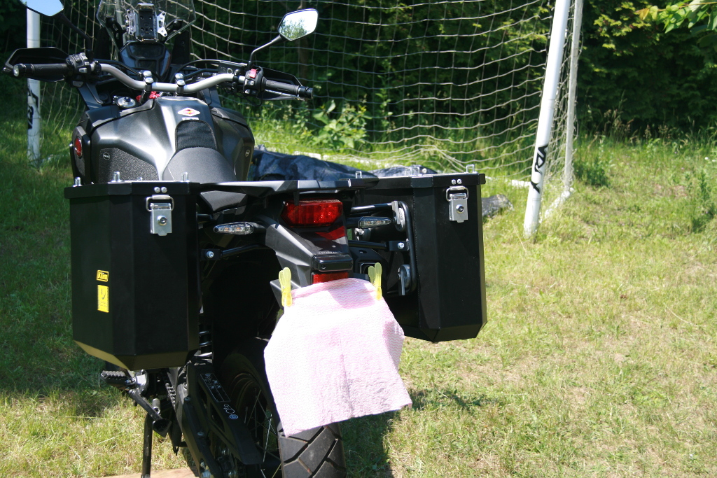 - Gesamtbreite nur 94 cm; war für mich sehr wichtig; Koffersystem=Lenkerbreite; 2*32L Koffer