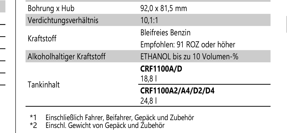 Laut dem Original-Handbuch, das bei meiner '22er AT dabei war, empfiehlt Honda "91 Oktan oder höher".