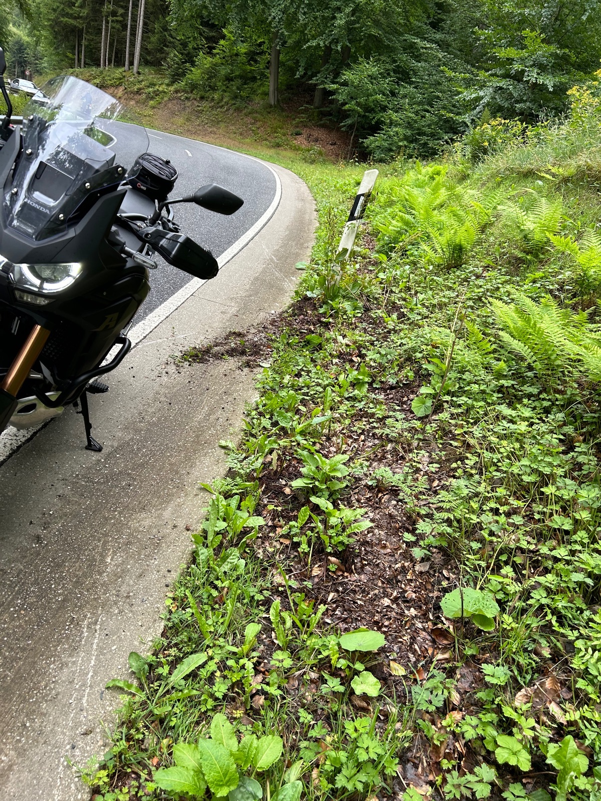 Ich hatte im August in einer absolut lächerlichen Kurve in der Eifel eine ungewollte Graviations-Erfahrung. Bei 50-70 ist mir augenscheinlich der Grip am Vorderrad irgendwie abhanden gekommen und ich habe mich lang gelegt. Viel Schliddern, das Moped über die Gegenfahrbahn ins Gemüse, ich auf meiner Spur geradeaus bis zum Stillstand. Der entgegenkommende R9T Fahrer hatte genug Zeit zu bremsen und hinter mir war niemand, also einfach mal ein bisschen Glück im Unglück gehabt. Eine Minute später kamen ein paar Jungs von der freiwilligen Feuerwehr und haben mir geholfen, das Moped aus dem Gemüse zu holen. (Vielen Dank nochmal dafür!!)