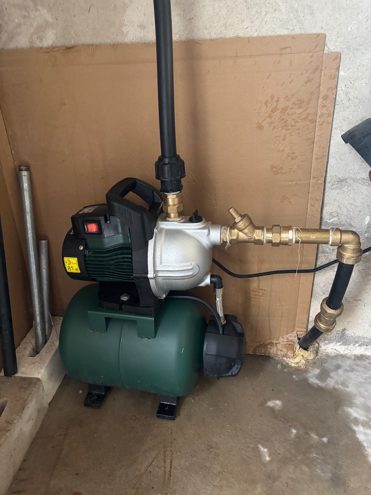 … ich gerade die Wasserpumpe für das Bohrloch für Gartenwasser wieder angeschlossen und zum Laufen bekommen habe 😃
