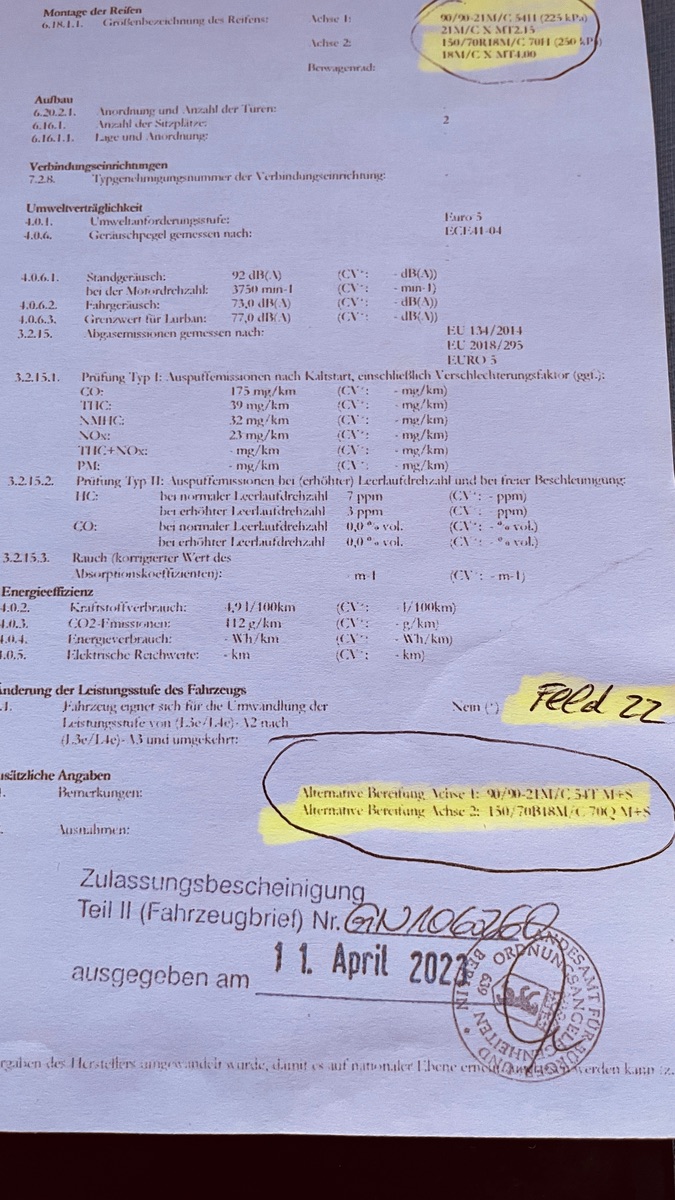 Es wundert mich halt weil bei meinem Bekannten der die 1000er hat. H Reifen im Fahrzeugschein stehen.