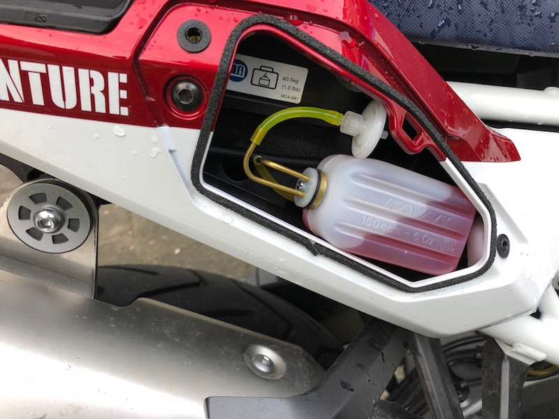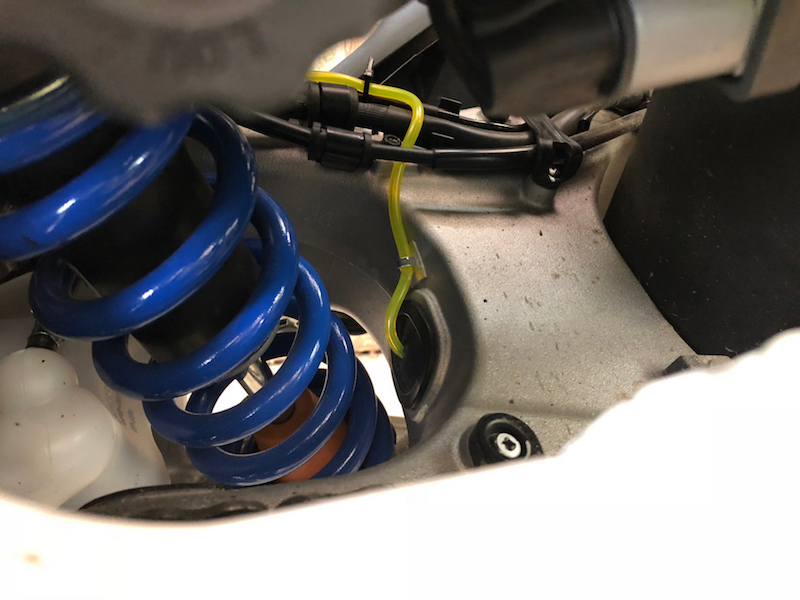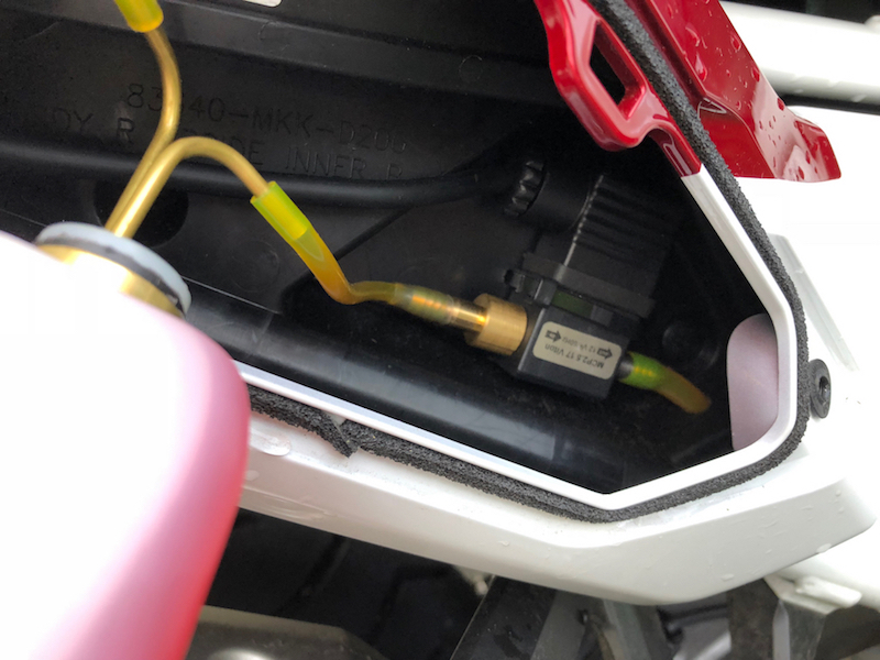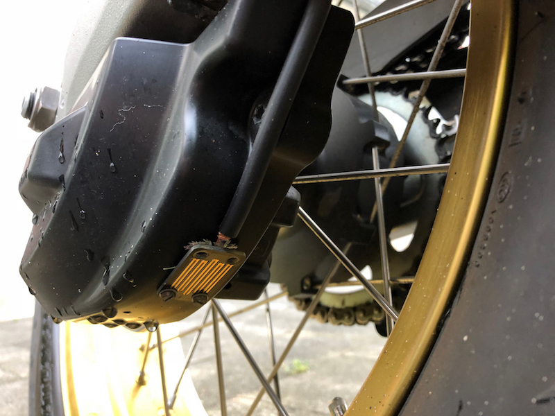 Der Tripmaster verfügt über einen entsprechend konfigurierten Kabelstrang mit dem er am vorderen Zubehörstecker angeschlossen wird, das ist richtig. Aber dieser dient ausschließlich für dessen Stromversorgung, denn der Tripmaster arbeitet nicht mit dem Tachosignal des Motorrades. Er verfügt über einen eigenen Speedpickup, der mittels eines Magneten am Vorderrad dessen Umdrehungszahl aufnimmt.