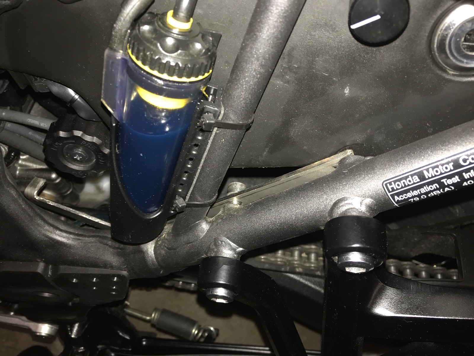 Wenn ich mir die Maße ansehe müsste die Halterung genau dort an der Schwinge geklebt werden, wo bereits die Halter des unteren Kettenschutzes angeschweißt sind :think: