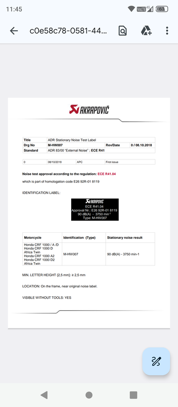 Unser Forumskollege Emsländer (Andreas) sprach mich gestern darauf an, ob ein Zubehörauspuff von Akrapovic mit ausgewiesenen 90dB bei 3750 U/min,