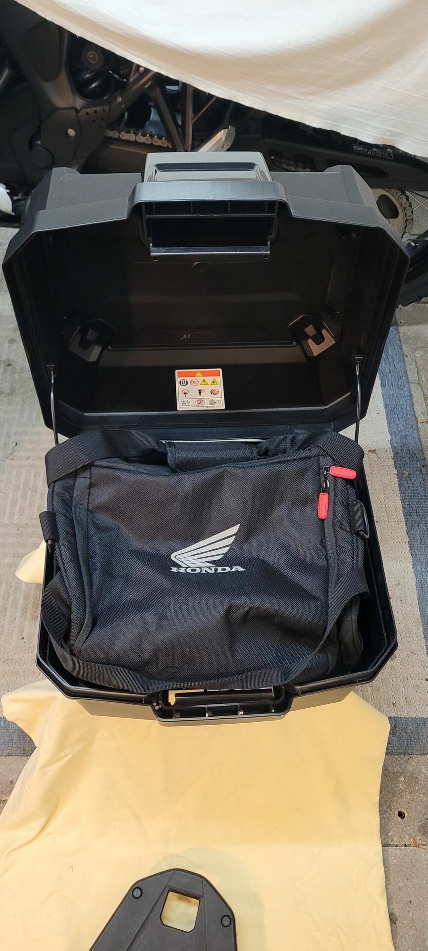 Hallo! Ich verkaufe ein originales Topcase für die 1000er Africa Twin mit der dazugehörigen Halteplatte und der originalen Honda Innentasche. Die Tasche ist bisher nur zur Ansicht ausgepackt worden. Auch das Topcase wurde praktisch nicht genutzt. Aktuell ist das Schloss auf meinen Zündschlüssel codiert. Ich kann also keinen Schlüssel mitgeben. Entweder kaufen Sie den Koffer ohne Schloss, oder es muss umcodiert werden. Das Angebot ist auch bei KleinAnzeigen zu sehen