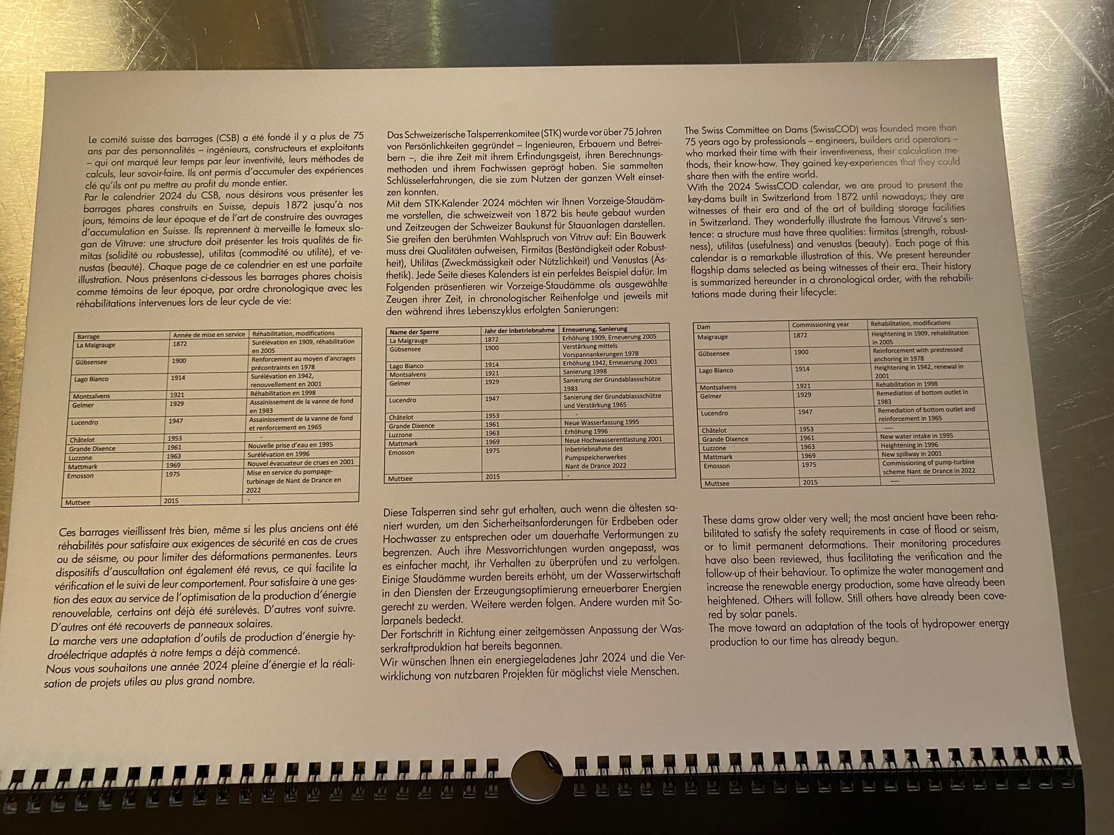 Die angehängten Bilder zeigen Kalenderbilder von Talsperren, bei denen ich bereits mehrmals beruflich vor Ort war, in den Sperren drinnen und draussen, darauf und darunter, bei jedem Wetter ausser Hagel: Mattmark, Grand Dixence und Muttsee. Bei Muttsee war ich auch während der Bauphase ca. 6x vor Ort; zu Fuss, mit der Seilbahn oder mit dem Heli.