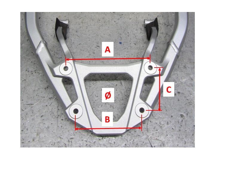 Gepäckbrücke CRF1100 - Maße der Befestigungsbohrungen