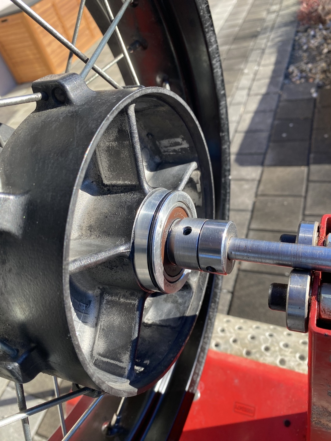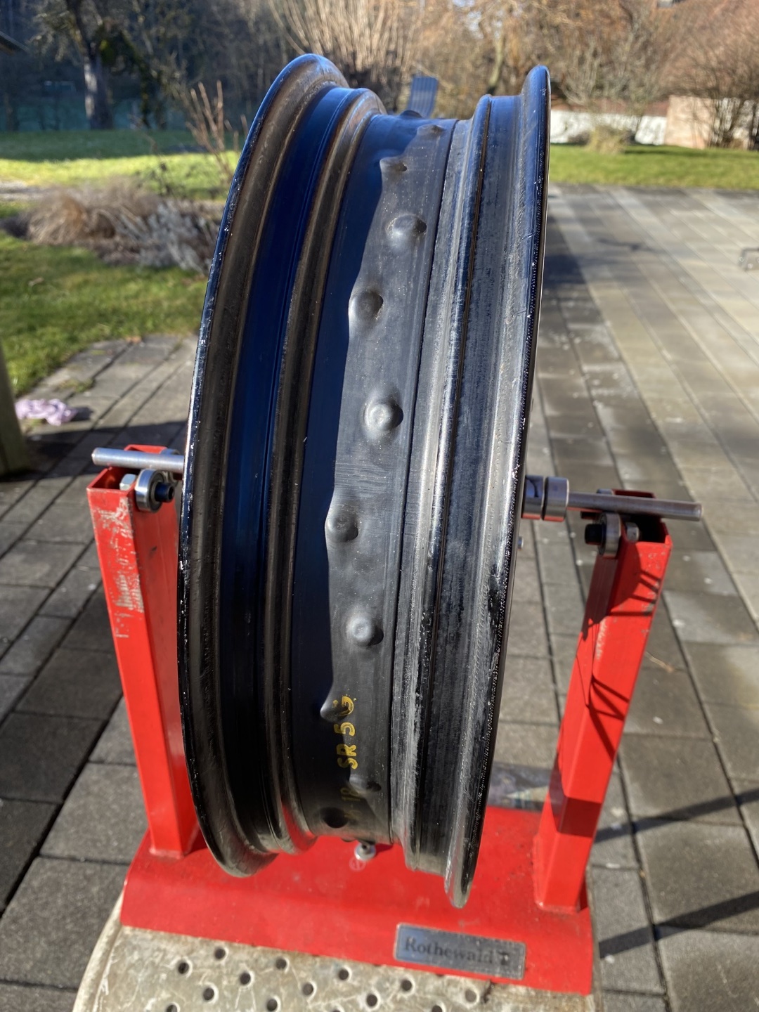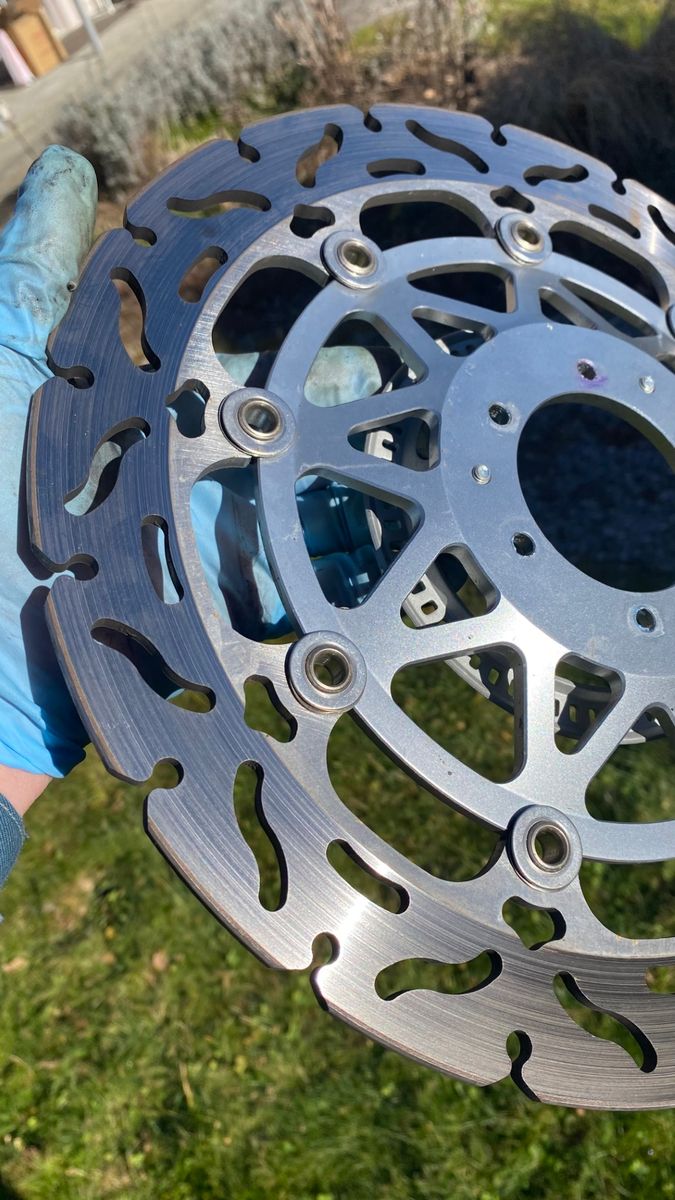 Die Räder weisen normale Gebrauchsspuren auf, keine grossen Macken oder Schläge. Sie wurden nie auf Salzstrassen gefahren. Die Räder waren selten im Einsatz, wurden auch für Schotter benutzt. Die Lager und Simmerringe sind in Ordnung. An den Speichen ist etwas eingebrannter Bremsstaub, der sich leicht wegpolieren lässt, wenn das stört. Ich bin nicht so der Putzer. Die Bremsscheiben sind quasi neuwertig. Sie haben weder Macken noch Rillen.