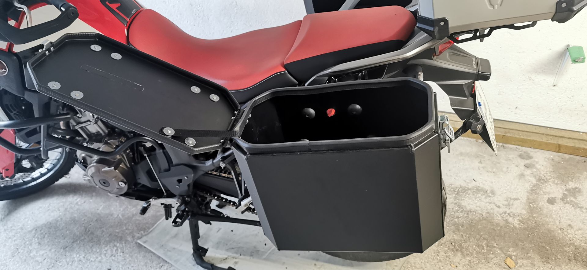 Seitenkoffer von G+G (abolut Wasserdicht) an SW Motech Kofferhalter.