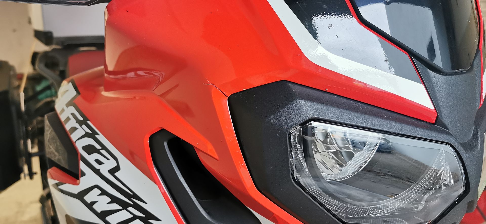 Die Verkleidung hat rechts neben dem Scheinwerfer einen kleinen Riss,